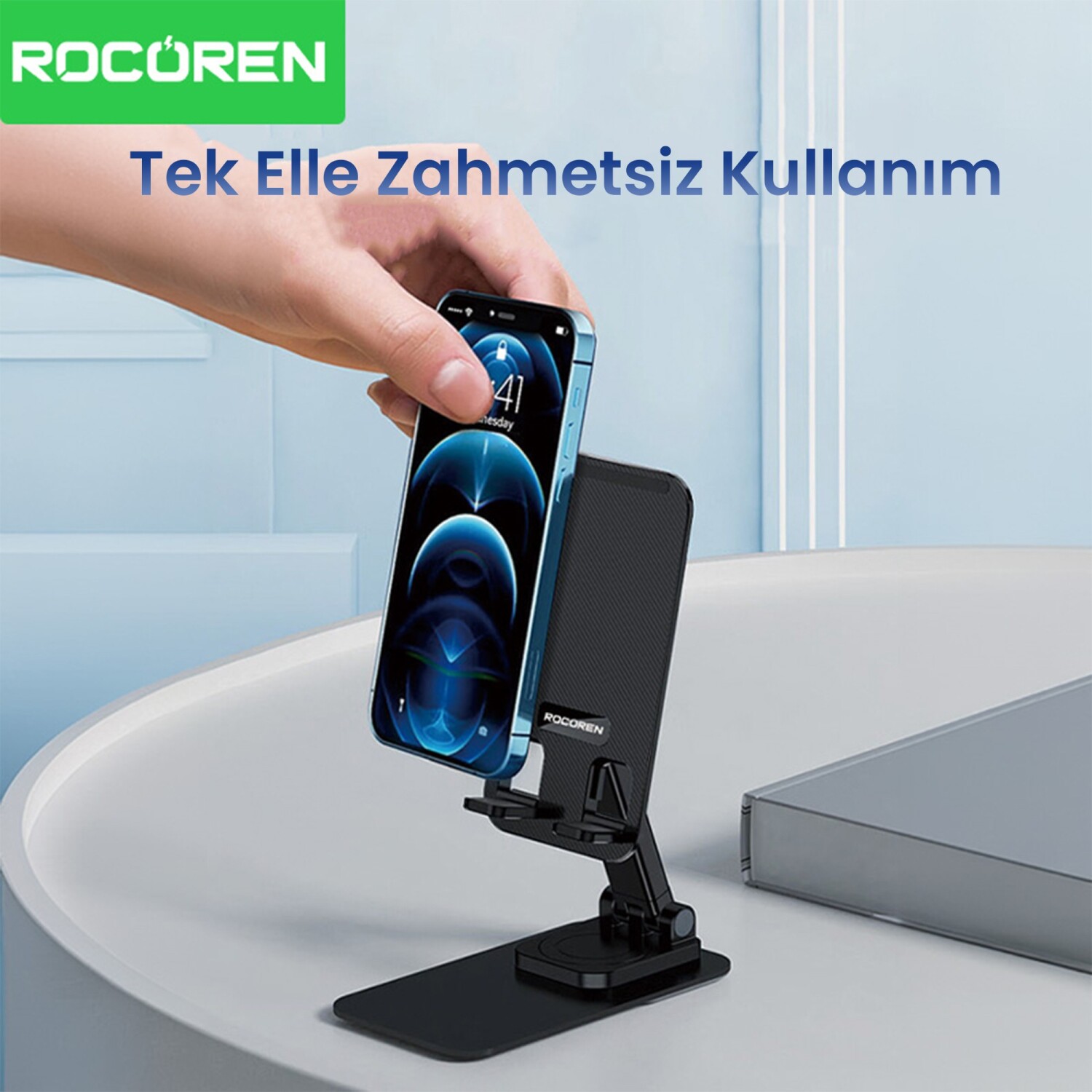 Ürün Adı: Rocoren 360° Dönebilen Katlanabilir Yükseklik ve Eğim Ayarlı Telefon Tutucu Stand