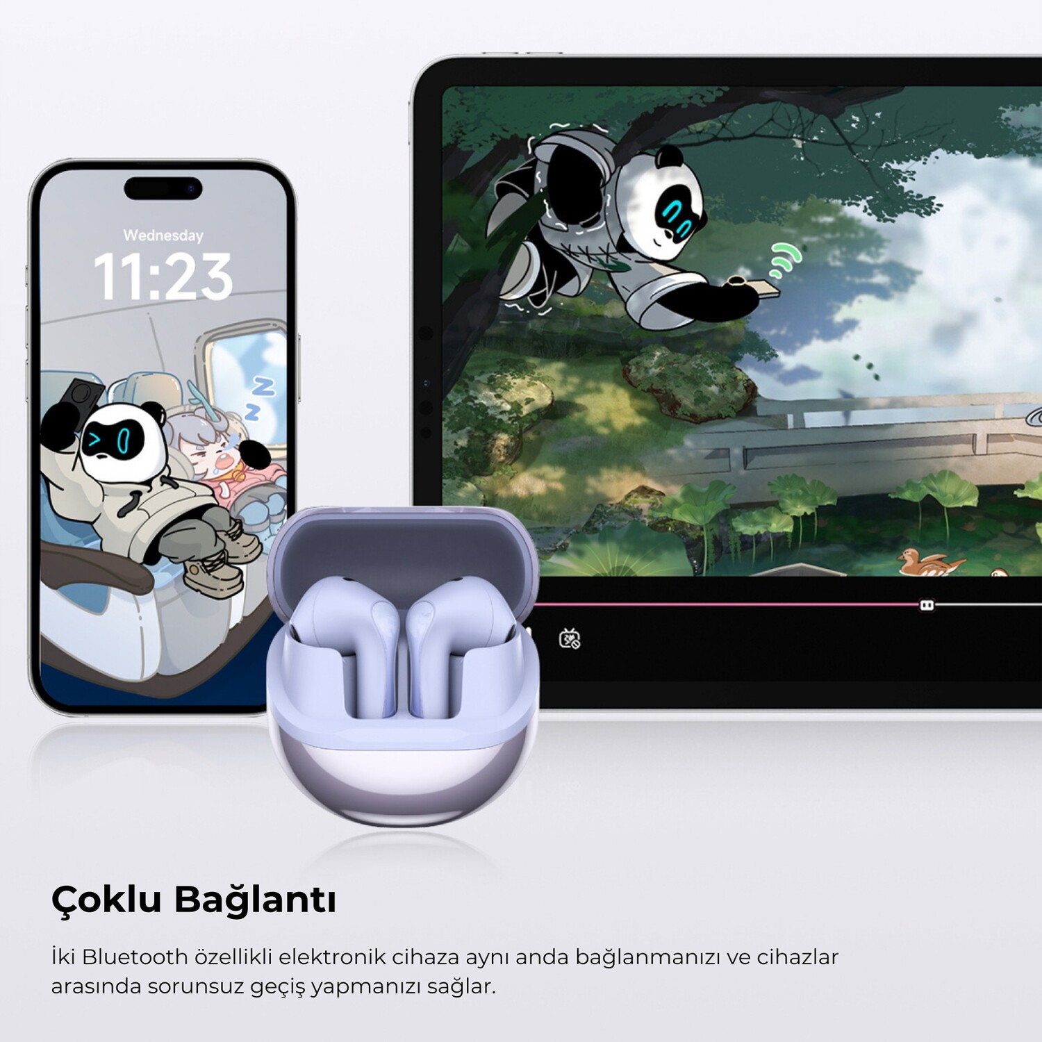 Bluetooth 5.4 teknolojisi ile daha hızlı, stabil ve düşük gecikmeli bağlantı imkanı sağlar.