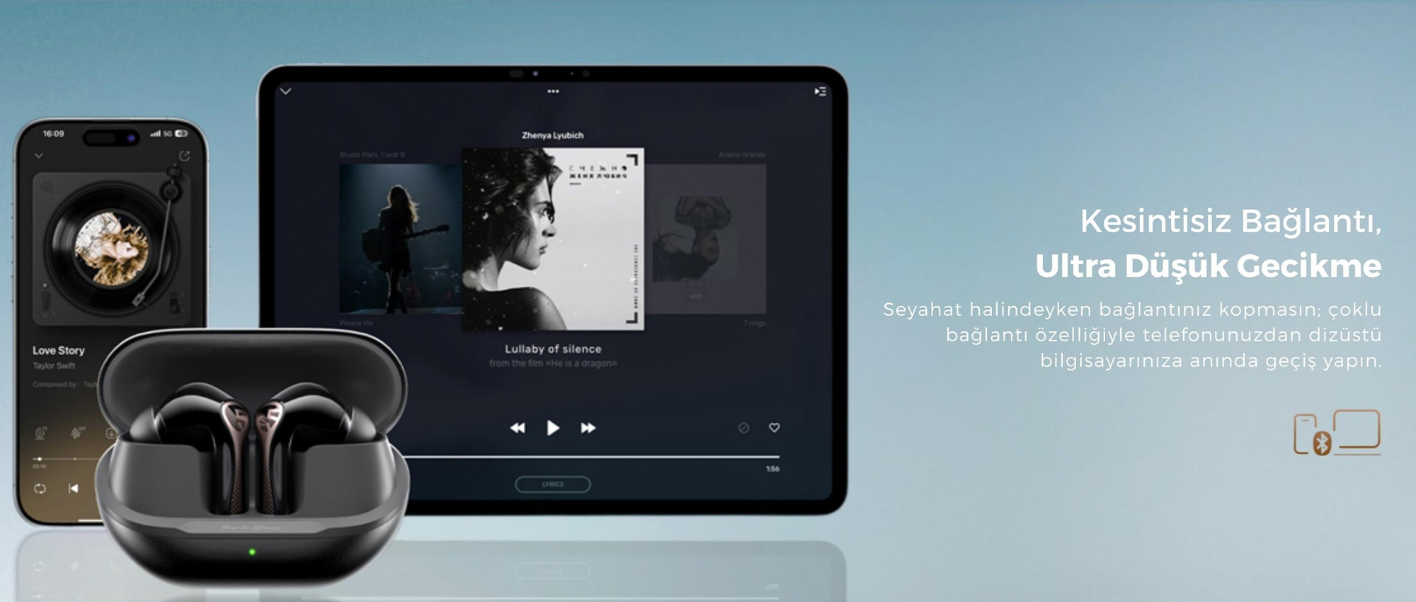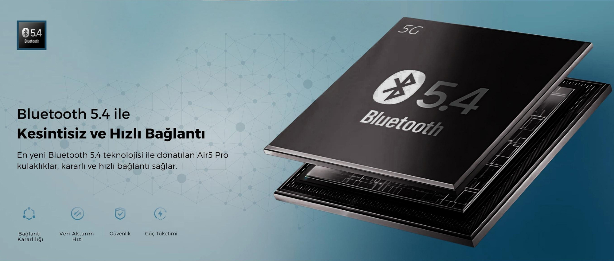 Bluetooth 5.4 teknolojisini destekler. Daha stabil bağlantı, daha düşük güç tüketimi ve düşük gecikme performansı sunar.