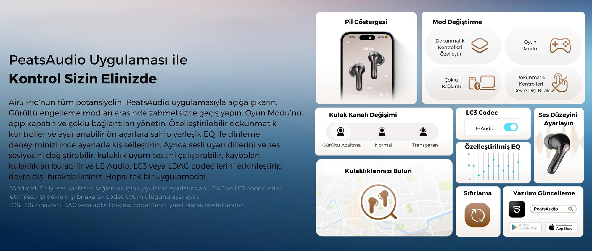 Desteklenen Codec’ler: aptX Lossless, aptX Adaptive, LDAC, LC3 (LE Audio), AAC, SBC