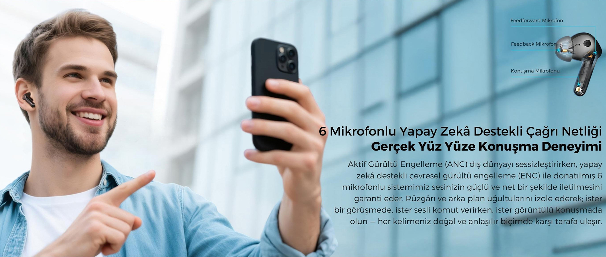 Mikrofon: 6 mikrofonlu AI destekli ENC + cVc™ 8.0