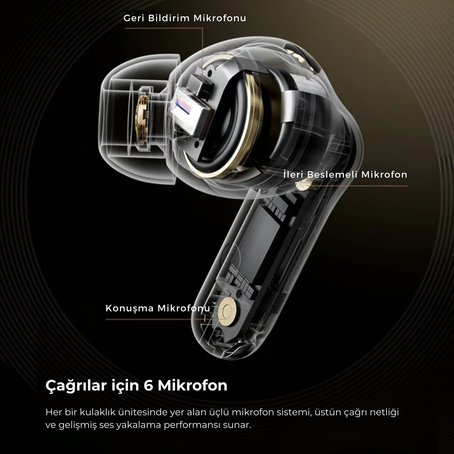ANC teknolojisi sayesinde çevresel gürültüyü etkili şekilde azaltır, böylece daha net ve kesintisiz müzik dinleme ve görüşme imkanı sağlar.