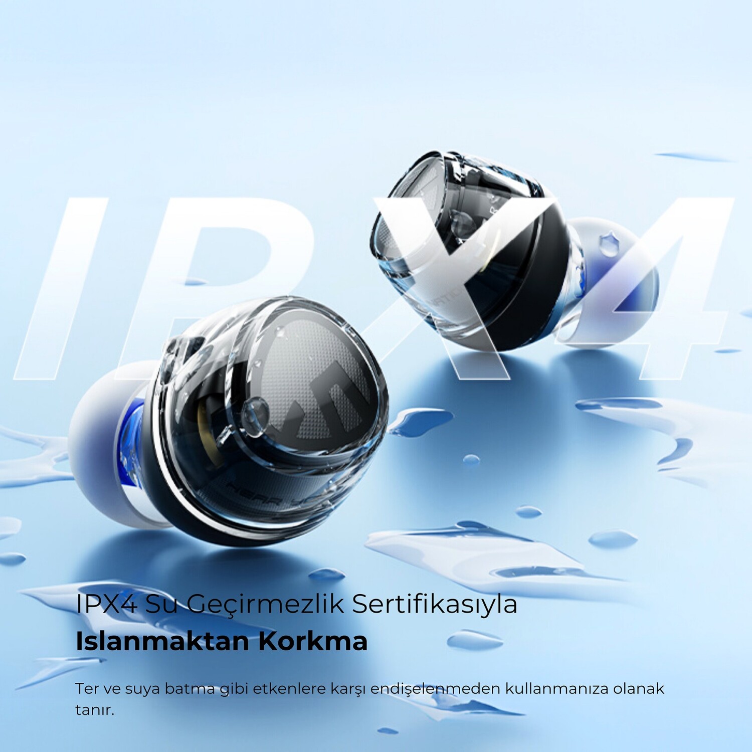 IPX4 su sıçramasına karşı dayanıklı yapısıyla spor ve dış mekan kullanımlarına uygundur. Ter veya hafif yağmur gibi etkenlere karşı direnç gösterir.