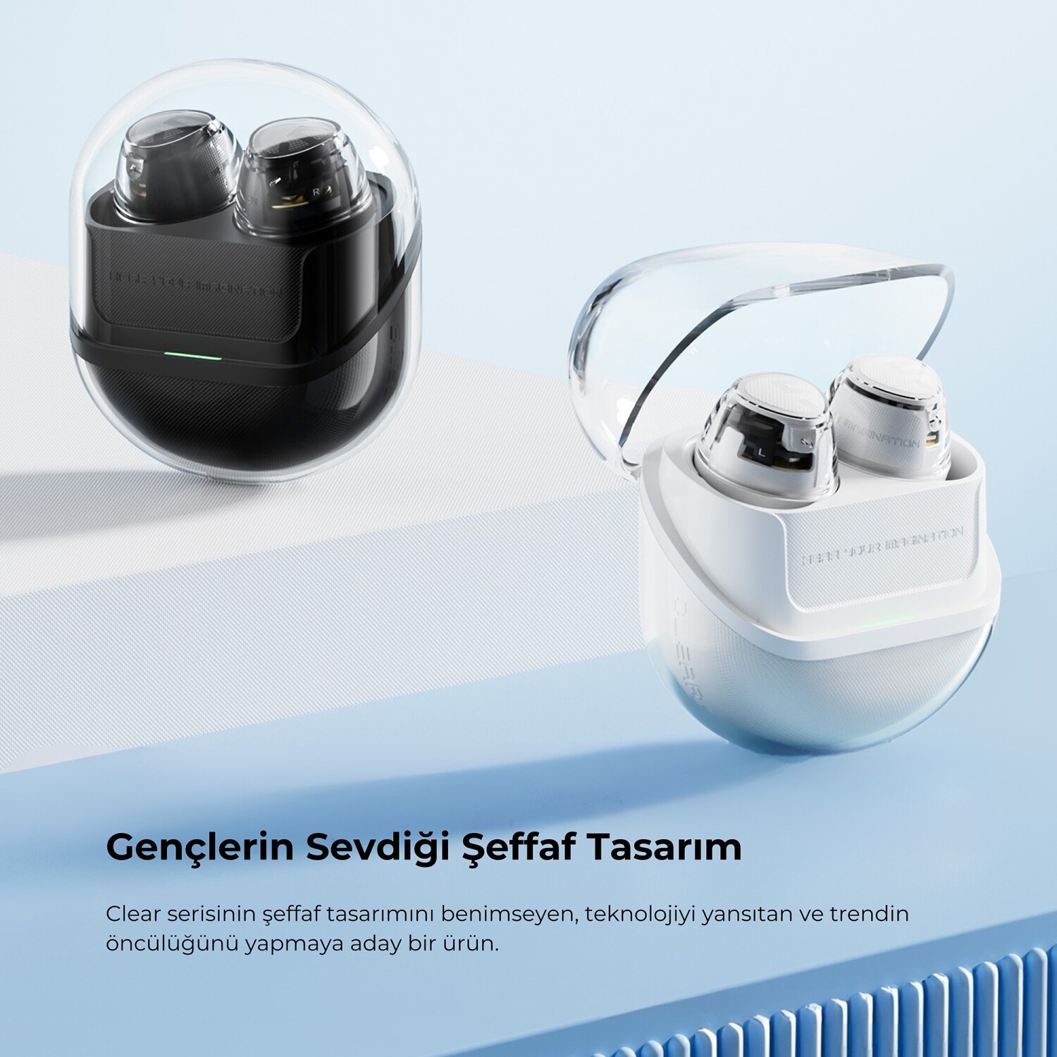 SoundPEATS Clear Dot, şeffaf tasarımı ve modern çizgileriyle sadece bir kulaklıktan fazlasını sunar. Gelişmiş 10 mm dinamik sürücüleri, yüksek çözünürlüklü ses kalitesiyle güçlü baslar ve net tizler üretirken, çift mikrofon ve AI destekli gürültü engelleme teknolojisiyle her ortamda berrak iletişim sağlar. Bluetooth 5.3 teknolojisi ile hızlı ve kararlı bağlantı sunan Clear Dot, şarj kutusuyla birlikte 27 saate kadar kullanım süresiyle günlük temponuza kolayca ayak uydurur. IPX4 suya dayanıklılık, oyun modu ve mobil uygulama desteği gibi birçok akıllı özellikle donatılmış bu model, hem şık tasarımı hem de işlevselliğiyle öne çıkar.