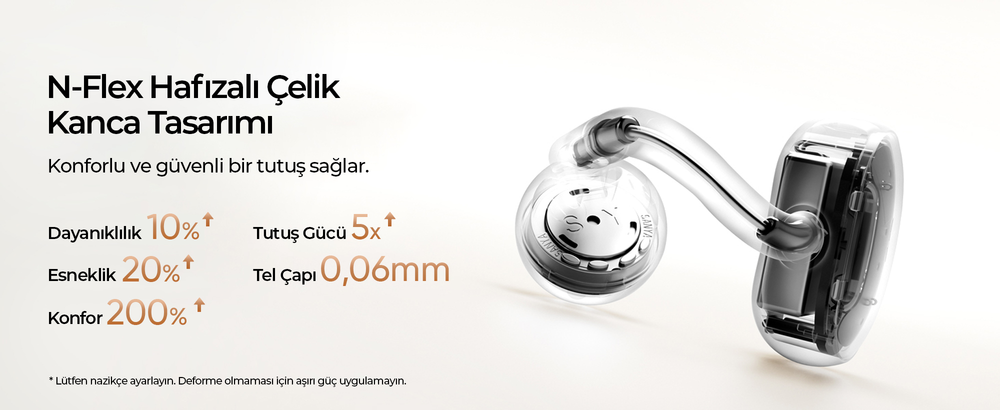 Sadece 5 gram ağırlığındaki gövdesi ve esnek titanyum hafızalı tel yapısı, kulağınızı nazikçe kavrar. Gözlük veya maske ile kullanımda bile baskı yapmaz, koşu sırasında düşmez ve gün boyu süren konfor sunar.