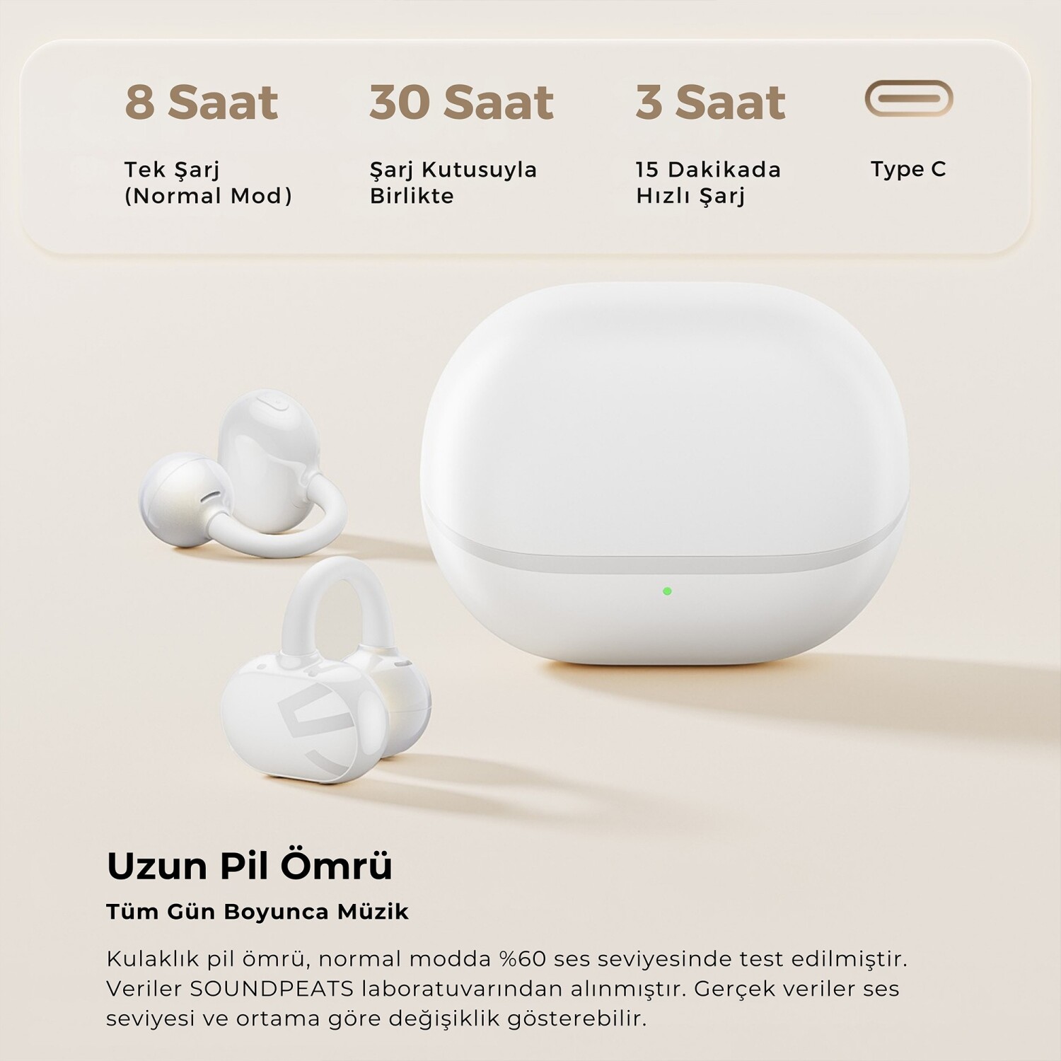 Soundpeats POP Clip Open-Ear ENC OWS Bluetooth 5.4 Kablosuz Kulaklık Beyaz