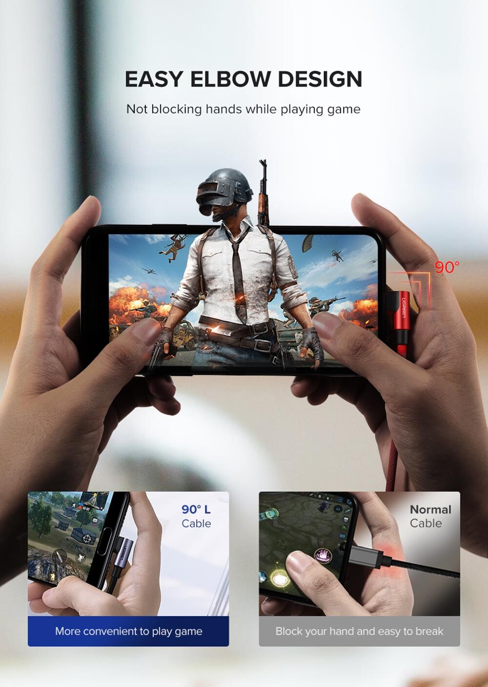 Ugreen Örgülü 90° Lightning iPhone Oyuncu Şarj Kablosu, 90 derece iPhone şarj kablosu şarj sırasında engelsiz oyun oynamak için mükemmel uyumlu bir yapıdadır. Oyun oynarken kabloda bükülme kırılma gibi sorunları 90° yapısı ve örgülü dış kılıfı ile ortadan kaldırabilirsiniz. MFI sertifikası sayesinde 8 pimli Lightning Apple iOS cihazları ile tamamen uyumludur.
