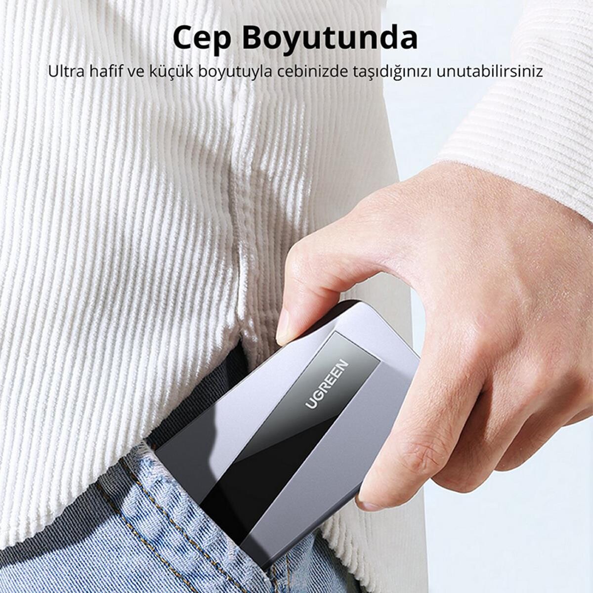 Ugreen USB 3.1 Gen 2 6Gbps Harici Taşınabilir M.2 NVME SSD 500 GB, kişisel depolama ihtiyaçlarınızı karşılayabilecek yüksek hafızasıyla filmlerinizi, müziklerinizi ve diğer dosyalarınızı sürekli yanınızda taşıyabilmeniz için mükemmel bir çözümdür. USB C 3.1 Gen 2 teknolojisi ile 6Gb/s yüksek veri aktarım hızına sahiptir. Gri-siyah rengiyle çok şık ve ergonomik bir tasarıma sahiptir. Type-C ve USB bağlantı noktasına sahip cihazlarla kullanabilirsiniz. Mac OS, Windows, Linux işletim sistemleriyle uyumludur. Tak ve çalıştır, bu işletim sistemleri için sürücü gerektirmez.