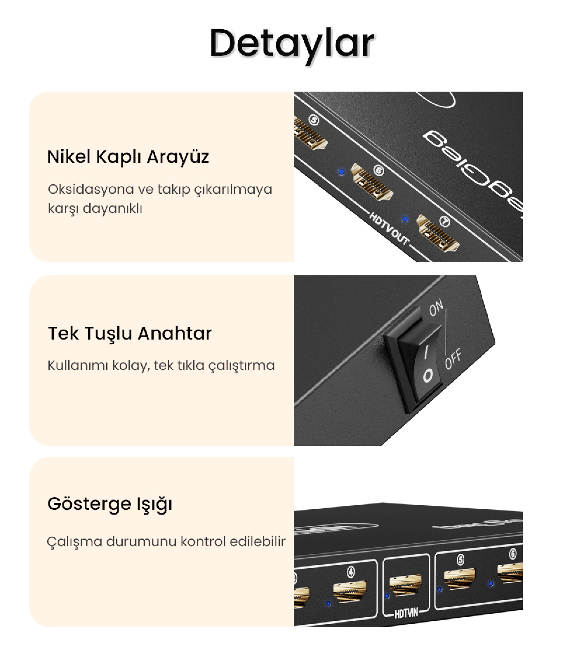 Görüntü çoklandıkça kalitenin düşeceği efsanesini yıkıyor. HDMI 1.4 ve HDCP 1.4 protokollerini tam destekleyen donanımı sayesinde 1080P (Full HD) çözünürlükte kusursuz bir standart sunarken, desteklenen kaynaklarda 4K/30Hz'e kadar ultra yüksek çözünürlüklü aktarıma olanak tanır. Ayrıca 3D video formatlarını destekleyerek ev sinema sistemlerinde veya özel sunumlarda derinlikli görüntüleme deneyimini korur.