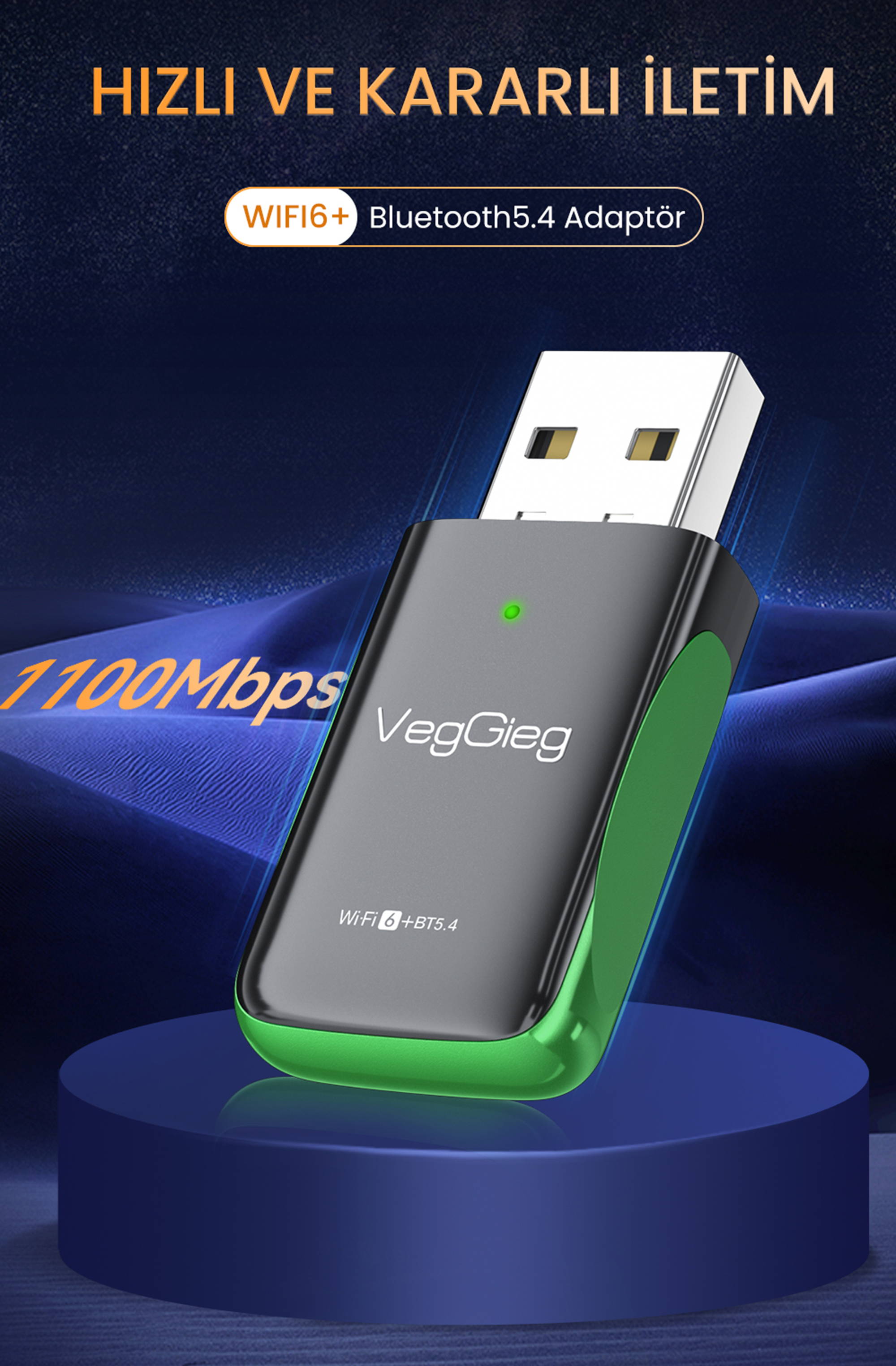VegGieg 2 in 1 Bluetooth Wireless Network Adapter, tek bir USB adaptör üzerinden hem kablosuz internet hem de Bluetooth bağlantısı ihtiyacını karşılamak üzere tasarlanmıştır. Wi-Fi 6 ve Bluetooth 5.4 desteği, 2.4GHz / 5GHz çift bant yapısı ve 1100 Mbps’ye kadar veri iletim hızı sayesinde hızlı, stabil ve modern bir kablosuz bağlantı deneyimi sunmayı hedefler. Driver gerektirmeyen yapısı ile pratik ve kullanıcı dostu bir çözümdür.