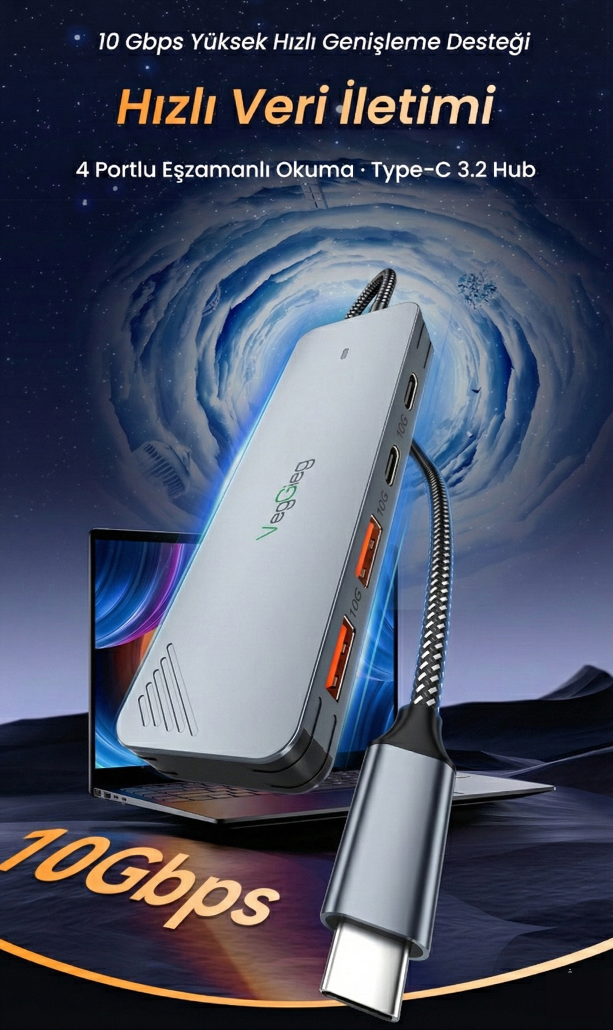 modern cihazlarda bağlantı sayısını artırmak ve yüksek hızlı veri aktarımı sağlamak için geliştirilmiştir. 2 adet USB-A ve 2 adet USB-C çıkışı sayesinde aynı anda birden fazla cihazı bağlamanıza olanak tanır. 10Gbps’ye kadar yüksek veri transfer hızı, USB-C giriş, alüminyum alaşımlı gövde ve plug & play desteği ile hem günlük hem de profesyonel kullanım için pratik ve güvenilir bir çözüm sunar.