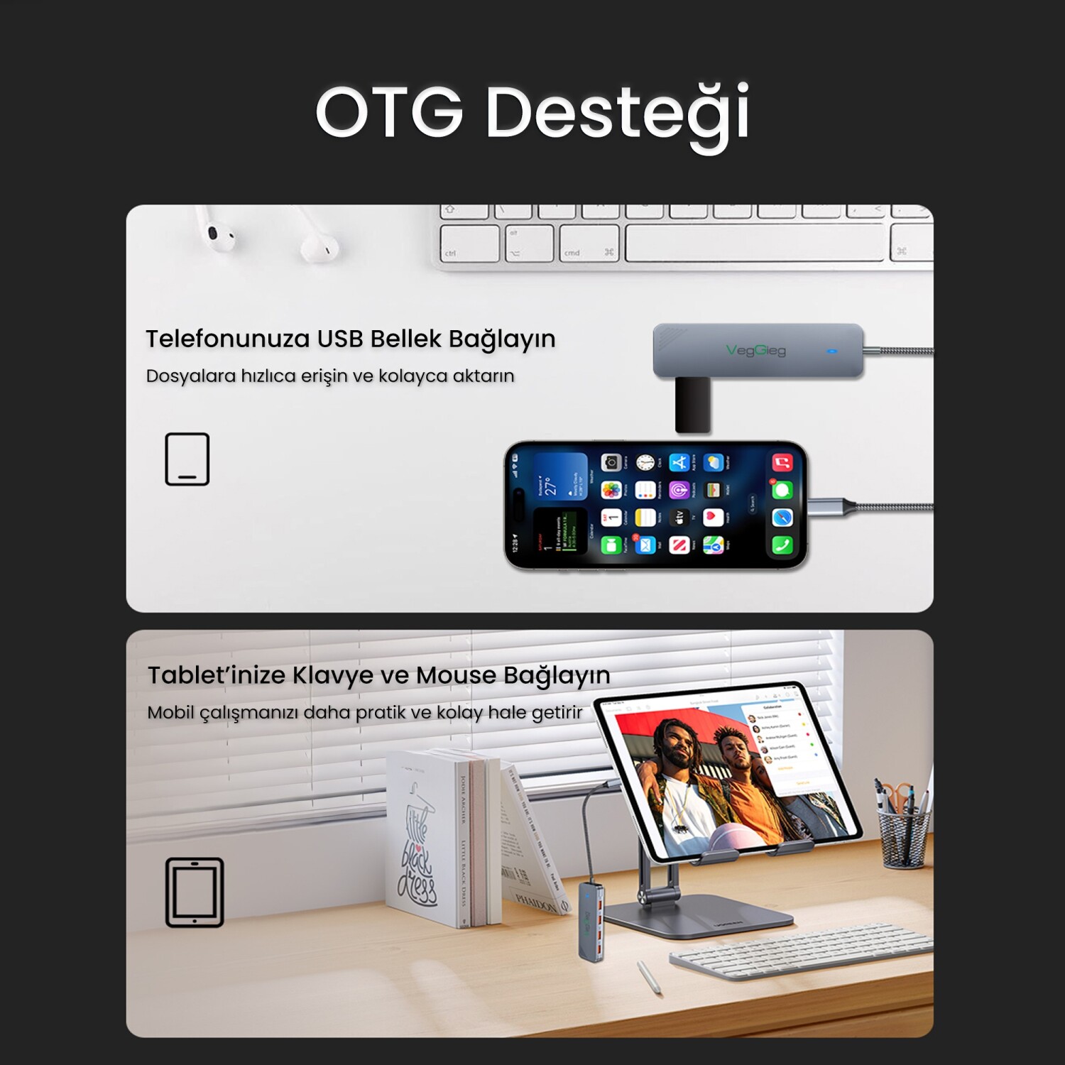 VegGieg 4 in 1 USB Hub, USB-C giriş