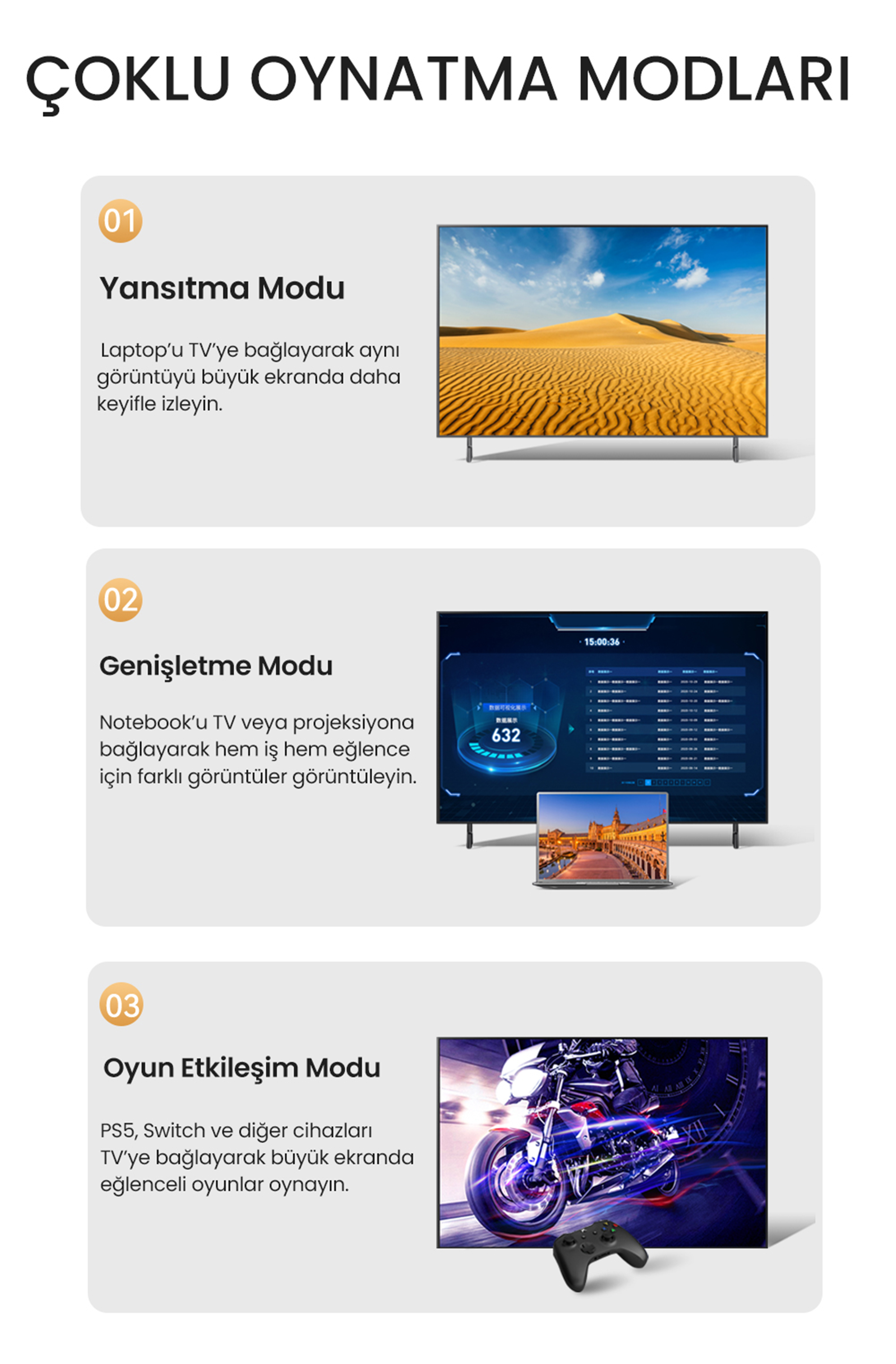 Bilgisayar, TV, PS4, PS5, Xbox gibi cihazlarla tam uyumludur.