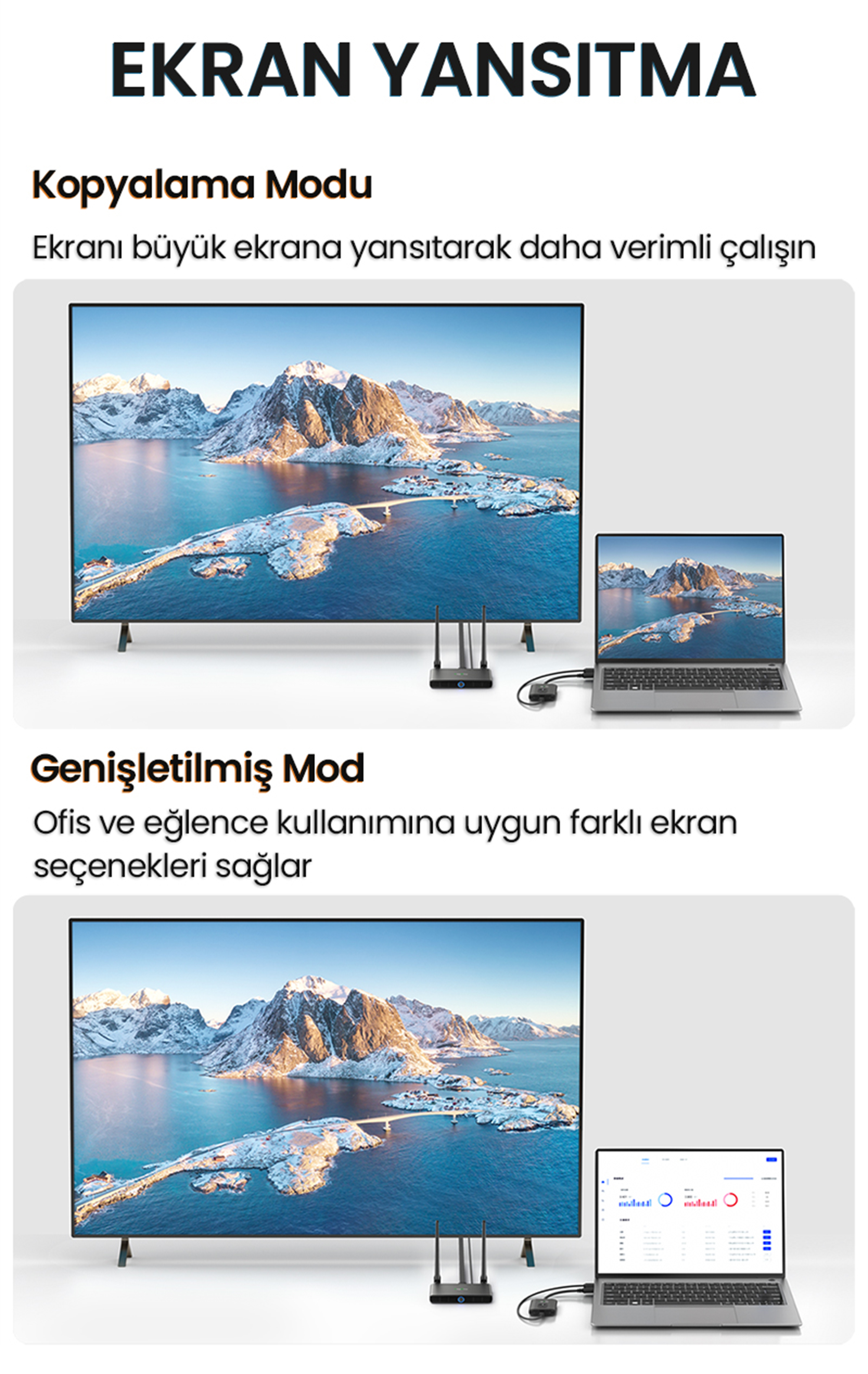 Yeni nesil 5GHz kablosuz frekans teknolojisi, daha az parazit ve daha yüksek hız sunarak görüntü aktarımında gecikmeyi minimuma indirir. Bu sayede sunumlar, toplantılar, eğitimler veya ev sinema sistemleri için net, akıcı ve stabil bir görüntü elde edebilirsiniz.
