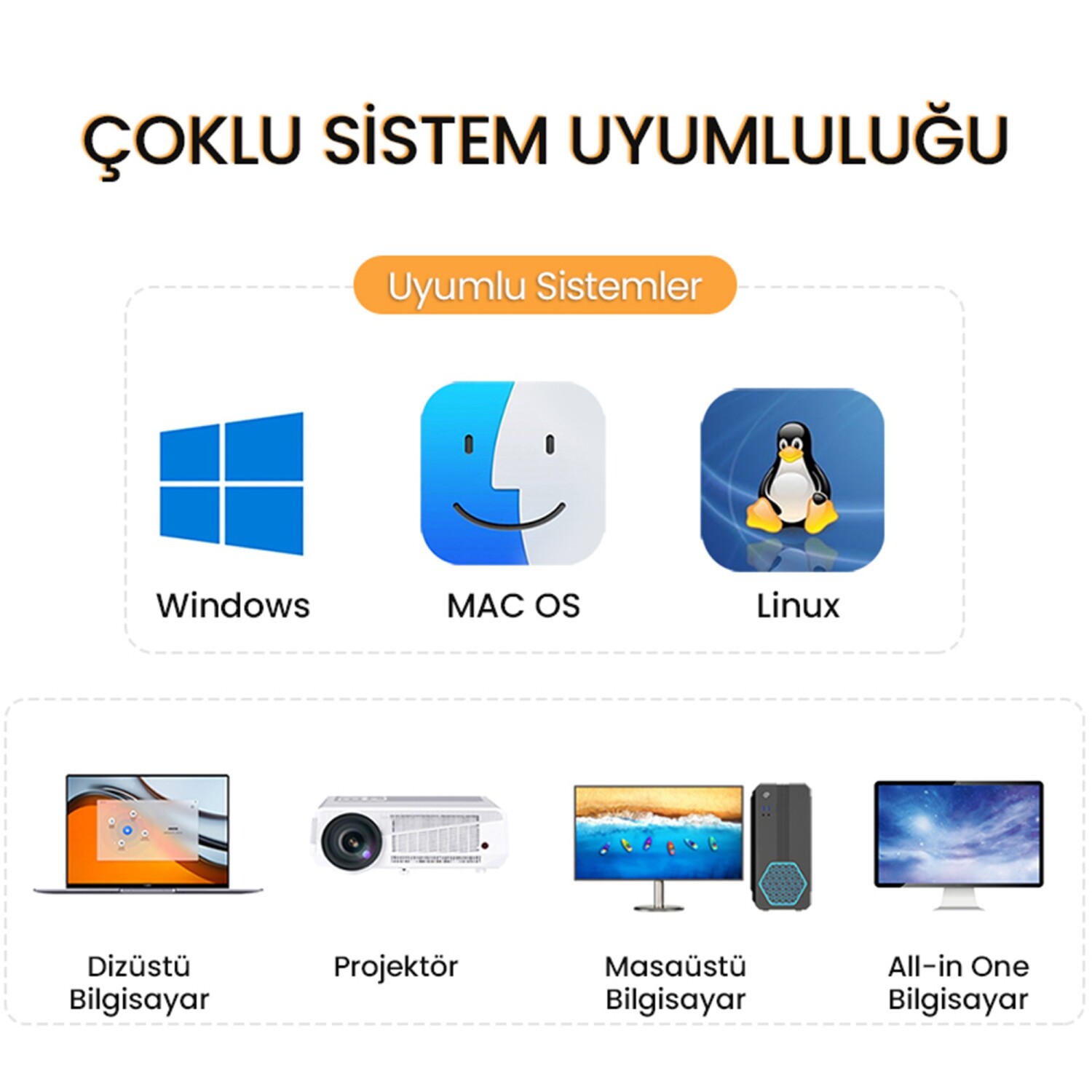 Hem HDMI hem de VGA portlarına sahip olması sayesinde farklı ekran türleriyle uyumlu çalışır. Eski tip VGA monitörler için ek dönüştürücüye ihtiyaç duyulmaz. Ayrıca, VGA çıkışı için bulunan 3.5mm Aux ses portu, görüntüyle birlikte ses iletimini de mümkün kılar.