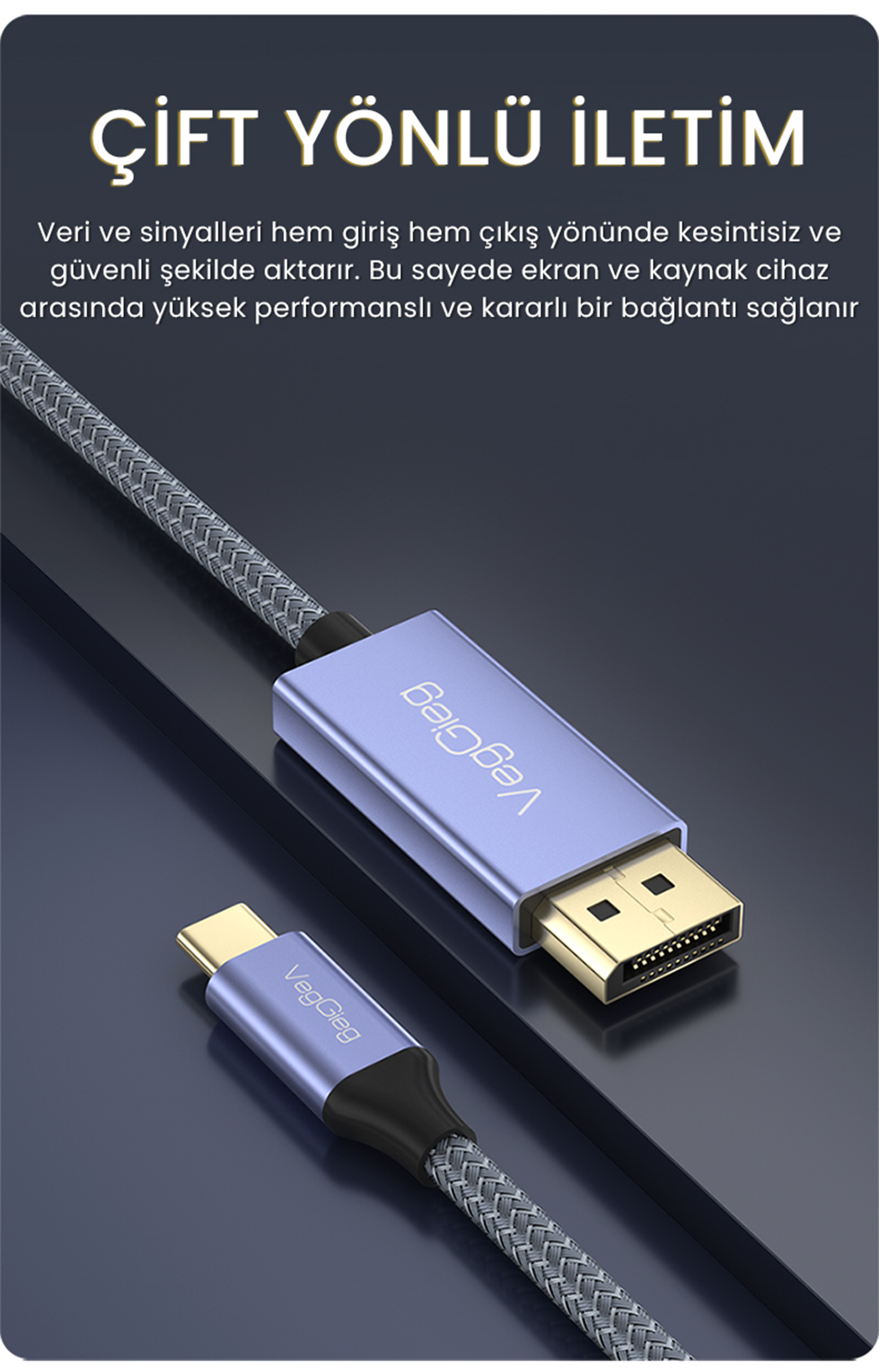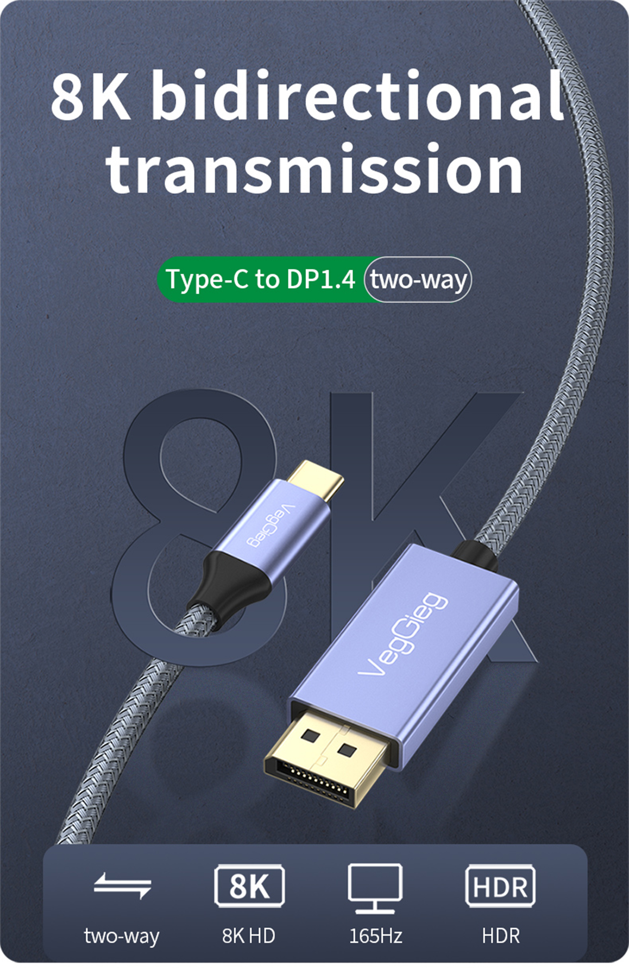 1 x VegGieg 8K/60Hz 4K/144Hz/120Hz Type-C 3.1 to Displayport 1.4 Çift Yönlü Kablo