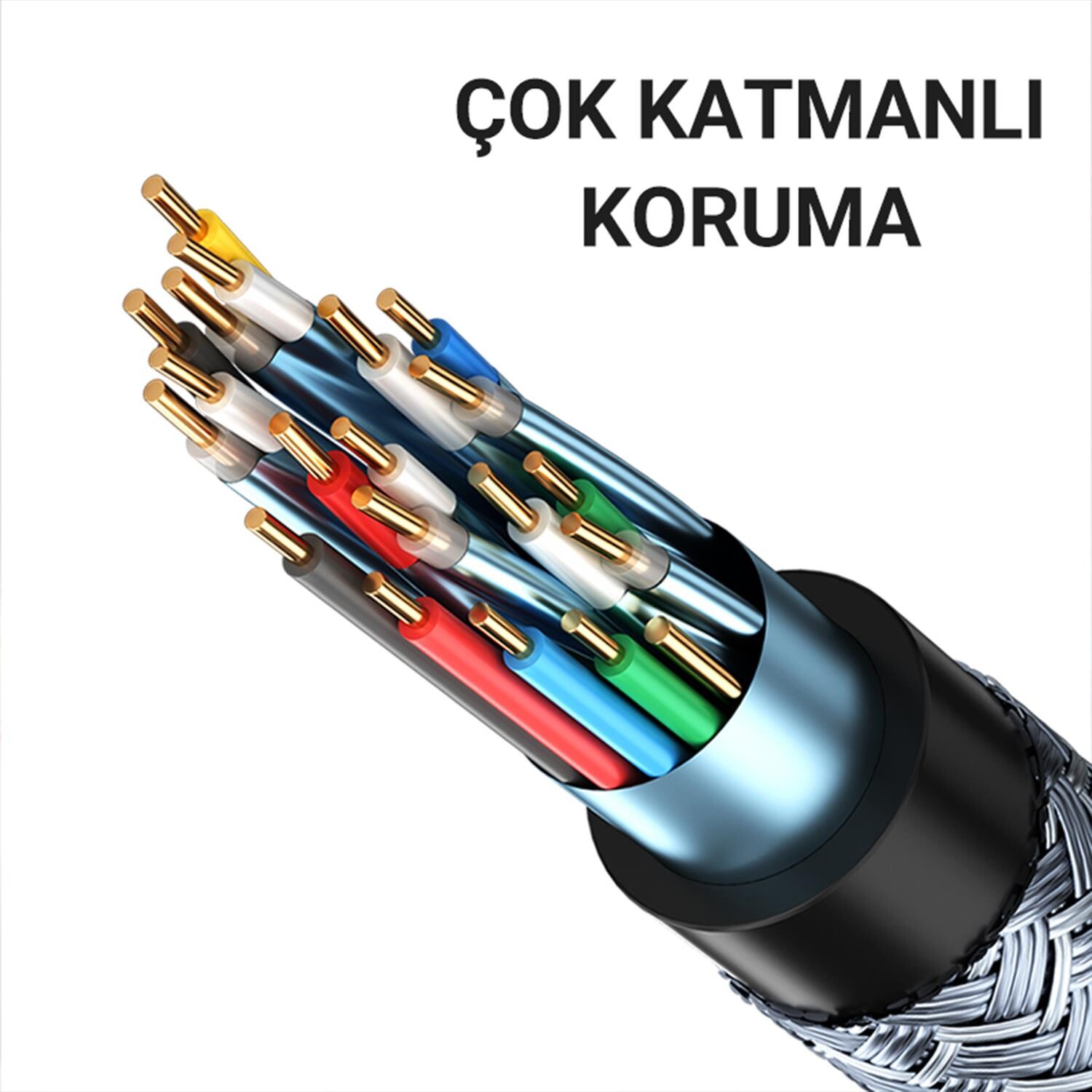 VegGieg 8K 60Hz DisplayPort 1.4 Görüntü ve Ses Aktarım Kablosu 3 Metre, DisplayPort destekli cihazlarınızdan HDTV, monitör veya projektöre yüksek çözünürlüklü video ve ses aktarımı sağlar. 7.1, 5.1 gibi çok kanallı dijital ses desteği sunar. 8K@60Hz, 4K@144Hz, 2K@240Hz ve 1080P@360Hz çözünürlükleri destekleyerek, mükemmel görüntü ve ses kalitesi sunar. Dinamik HDR ve HDCP 2.2 desteği sayesinde, net ve gerçekçi renklerle dolu bir görsel deneyim elde ede bilebilirsiniz. 32.4 Gbps bant genişliği ile hızlı veri aktarımı yaparak, kesintisiz bir görüntü ve ses deneyimi sunar. 30AWG kalınlığında, bakır kaplamalı kablo yapısı, üç katmanlı koruma ile elektromanyetik parazitlere karşı dayanıklıdır. Kaliteli alaşım kaplama ve altın kaplama konektörler, uzun ömürlü kullanım ve üstün performans sağlar.
