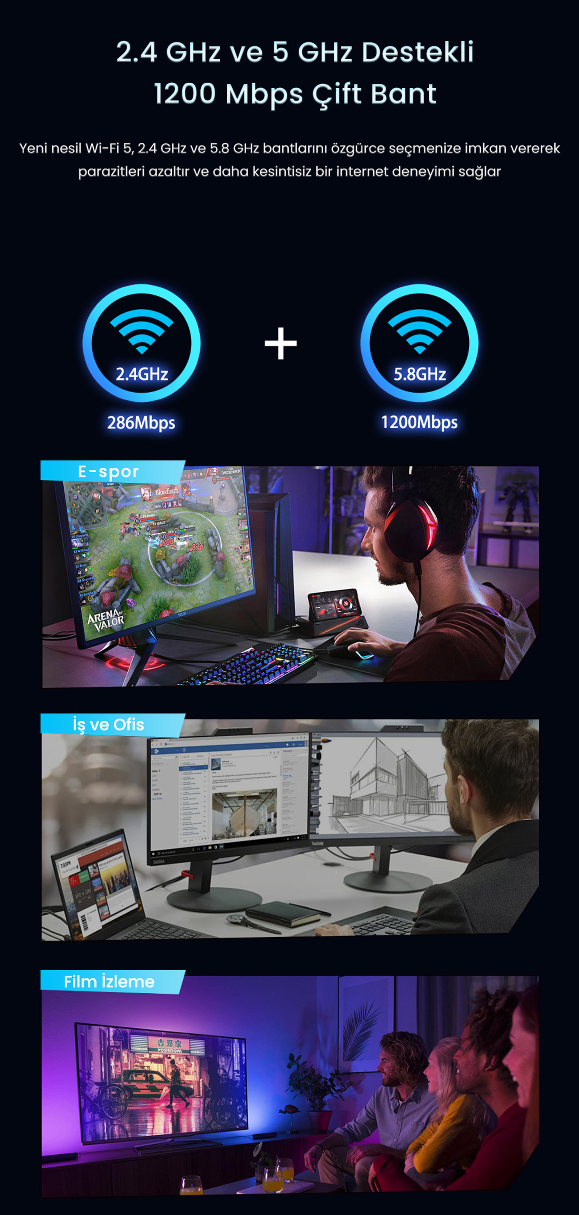 Dual Band 2.4GHz ve 5GHz Frekans Desteği
