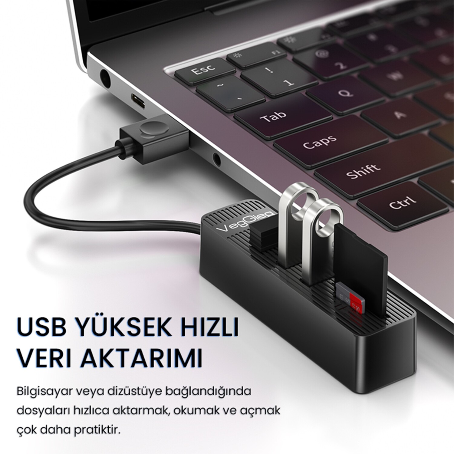 1 x VegGieg USB 2.0 SD - MicroSD Kart Okuyucu ve 3 Port USB Çoklayıcı Hub
