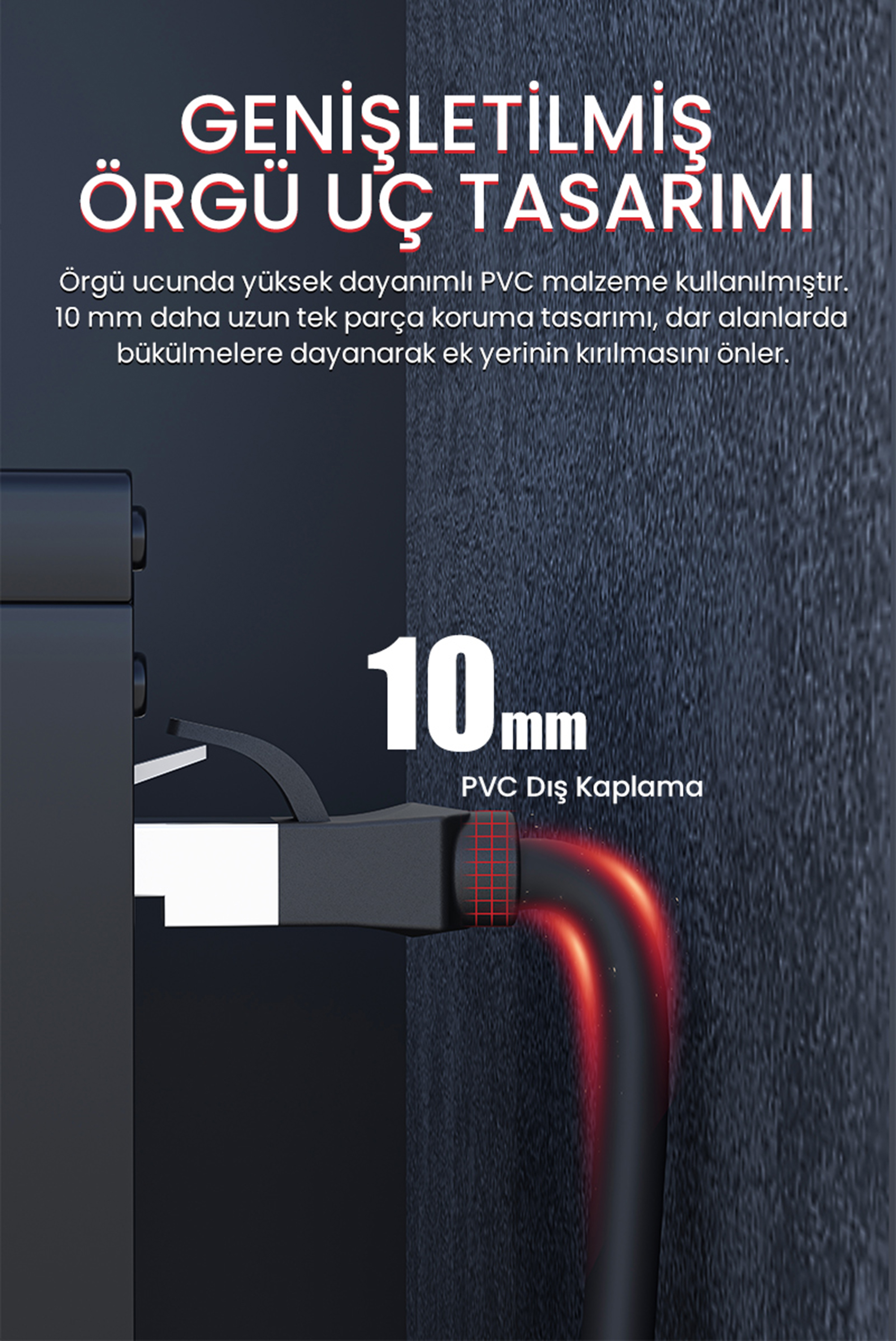 Oksijensiz saf bakırdan üretilen iç iletkenler, sinyal kaybını en aza indirir ve bağlantı kalitesini artırır. 26AWG kalınlığındaki iç tel yapısı, uzun mesafelerde dahi veri iletiminde kararlılık sağlar. Dış yüzeyinde yer alan dayanıklı PVC kaplama, kablonun eğilme, bükülme veya dış darbelere karşı korunmasını sağlayarak uzun ömürlü kullanım sunar.