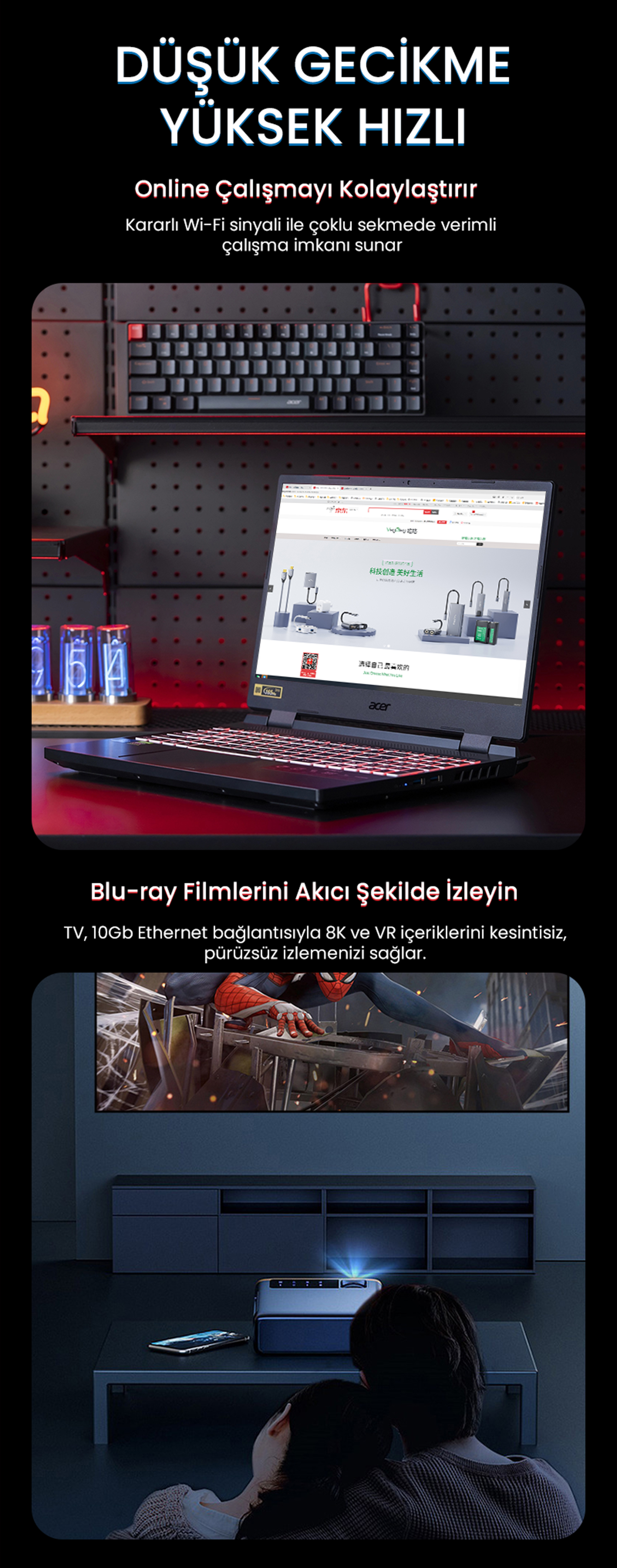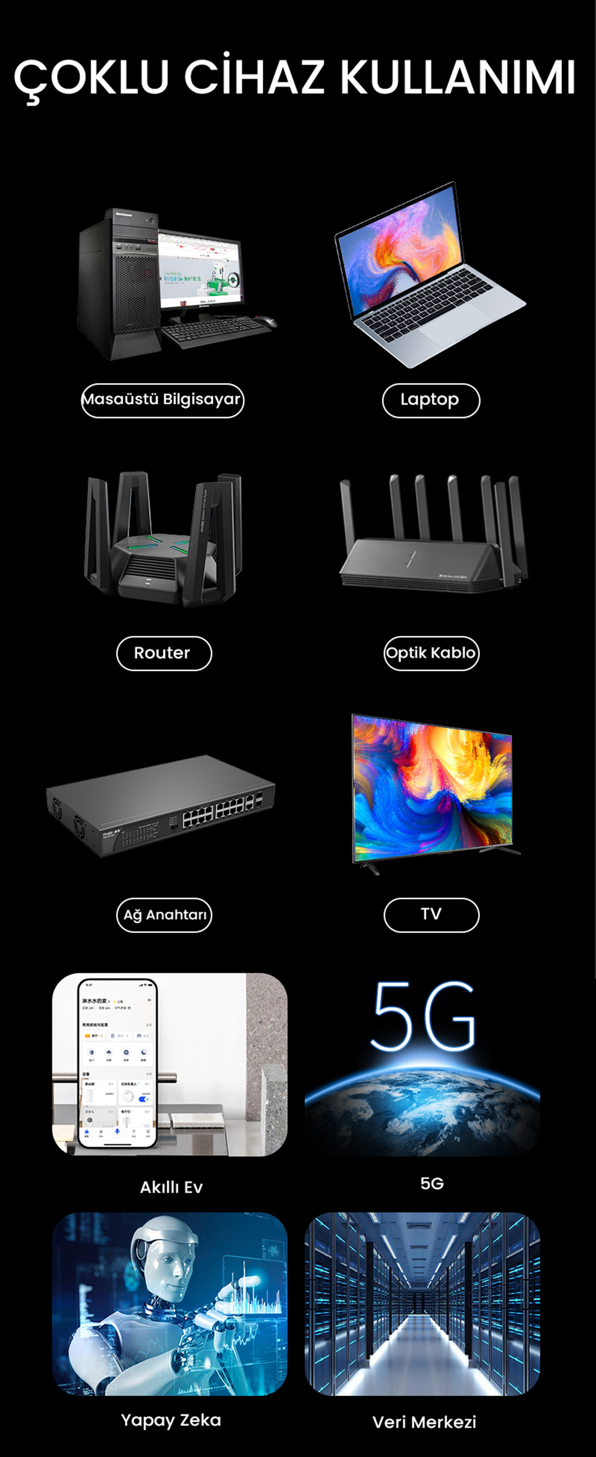 RJ45 kristal konnektör yapısı sayesinde bilgisayar, modem, router, switch, akıllı TV ve oyun konsolları dahil tüm RJ45 destekli cihazlarla uyumlu çalışır.