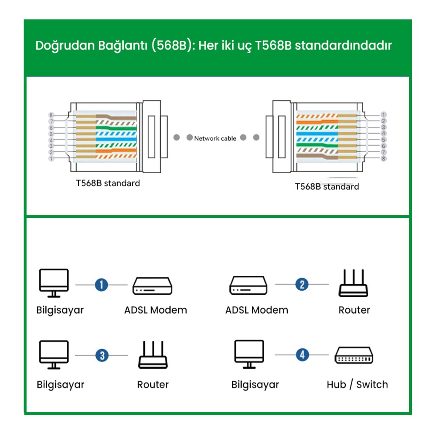 Standartlar: T568A / T568B
