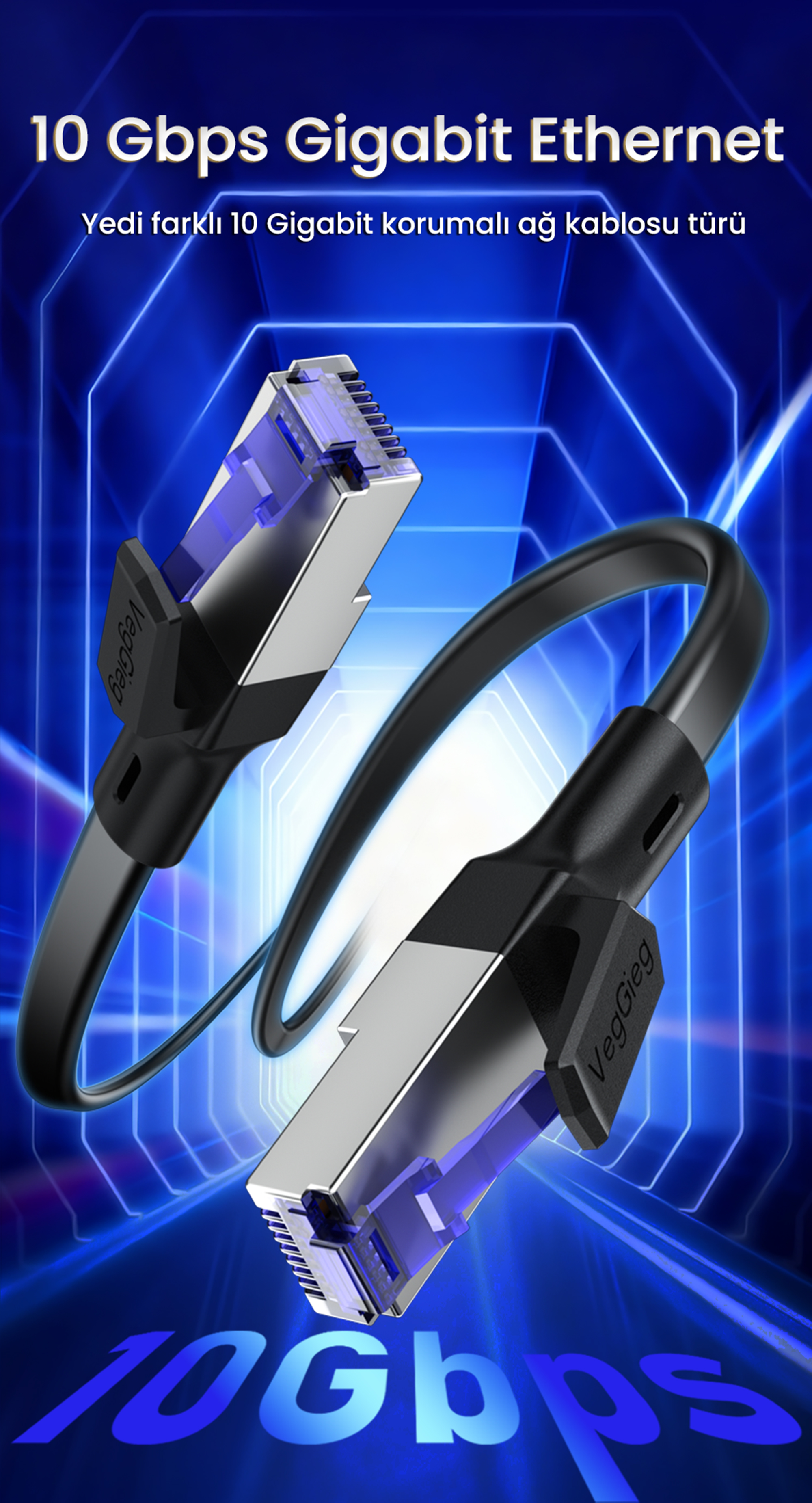 VegGieg CAT7 Ethernet Kablosu, 10Gbps’ye kadar yüksek veri iletim kapasitesi ve 600 MHz bant geniş
