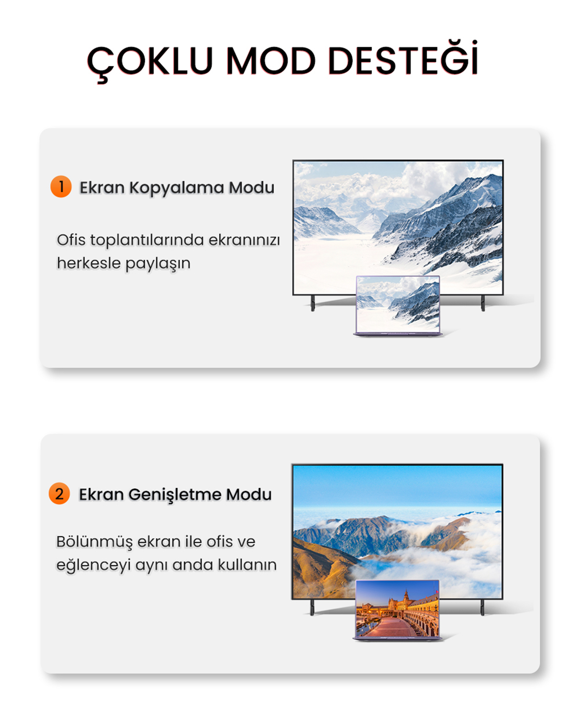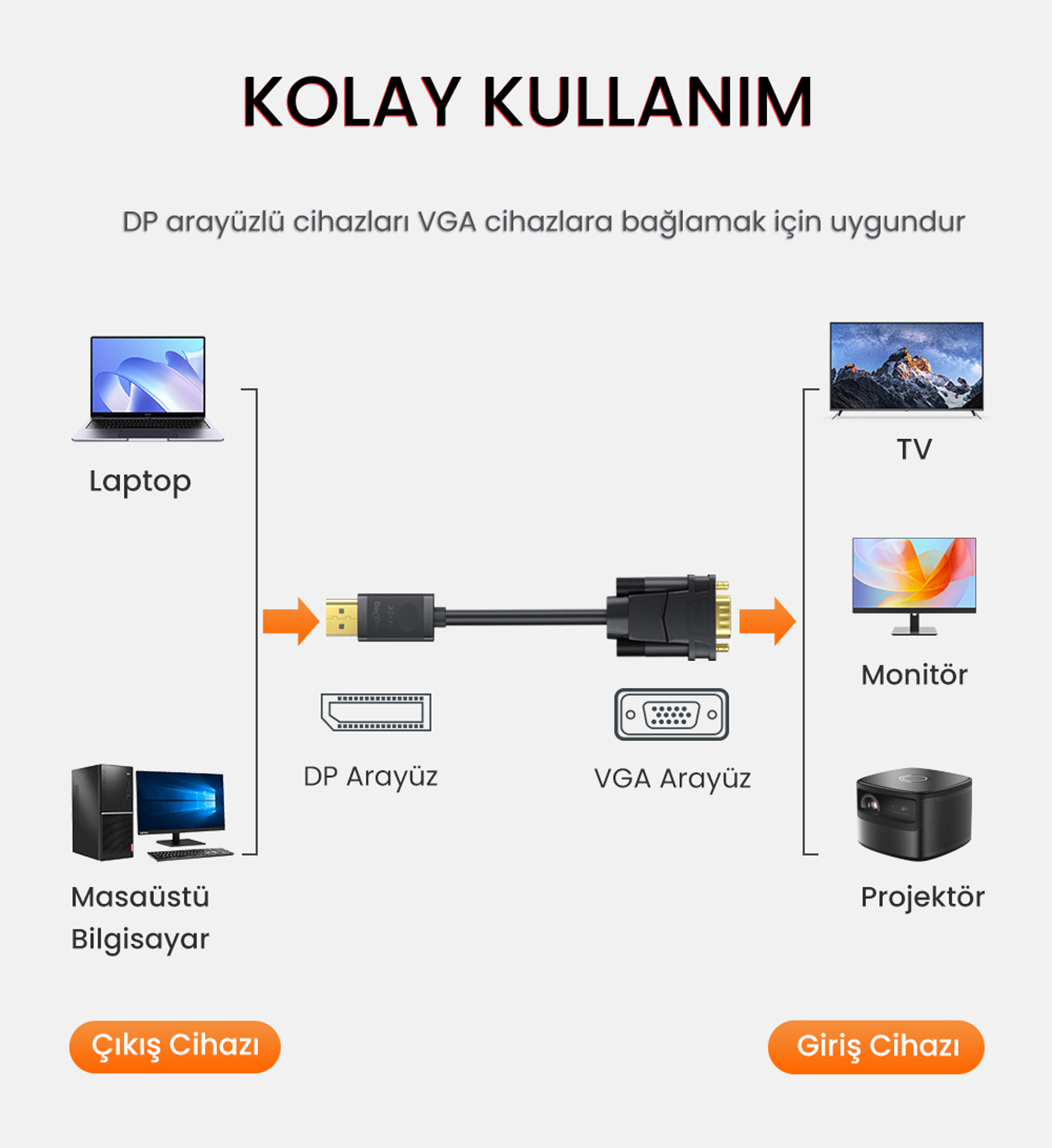 DisplayPort çıkışına sahip kurumsal dizüstü bilgisayarları (iş bilgisayarları) toplantı odalarındaki VGA girişli projeksiyon cihazlarına bağlayarak kesintisiz sunum yapma.