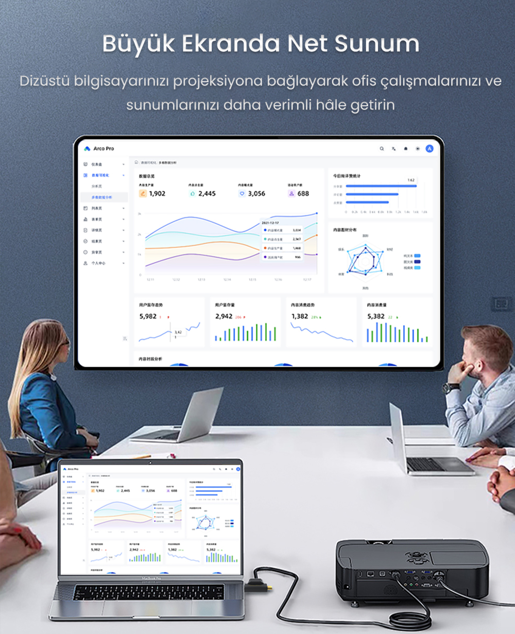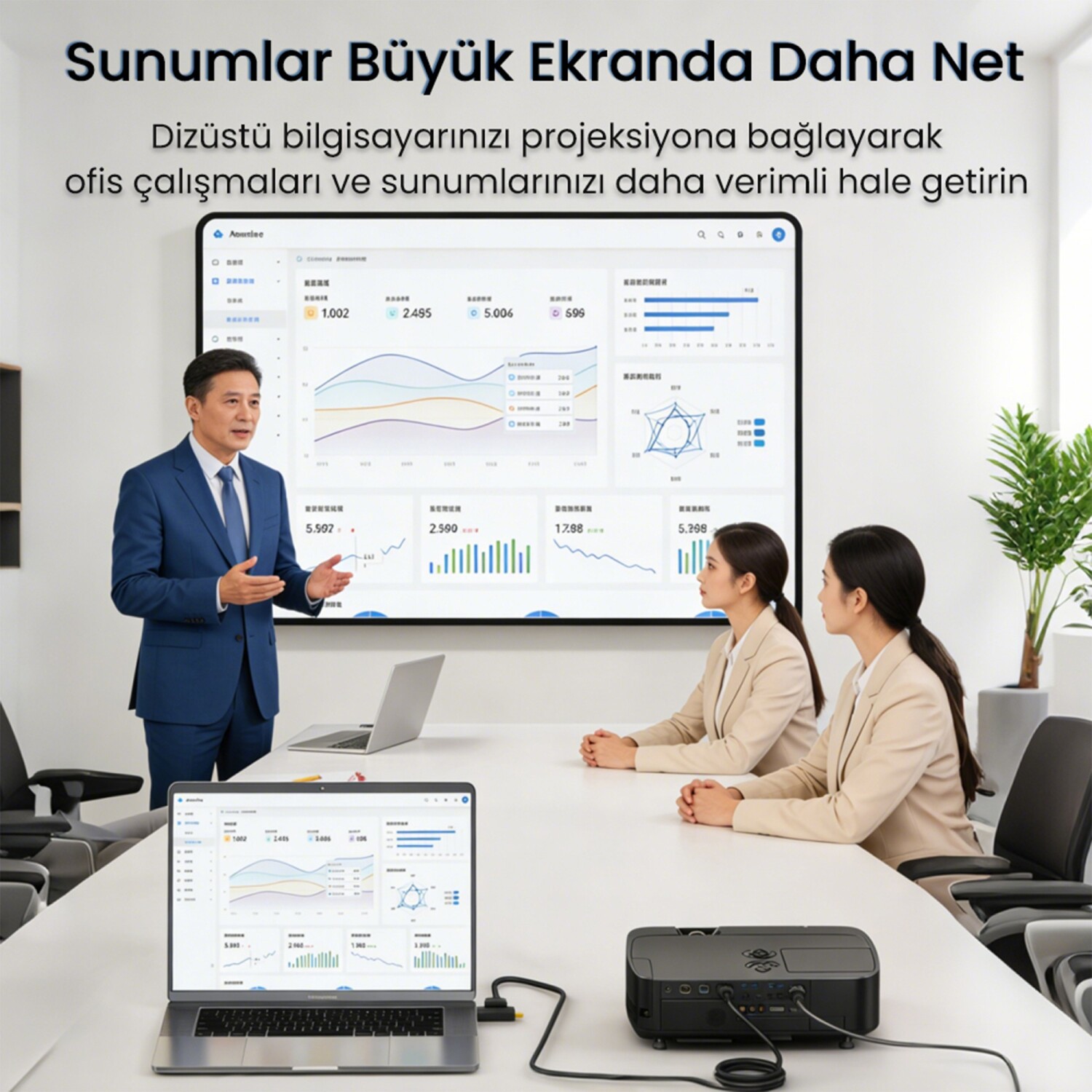 Herhangi bir sürücü veya yazılım gerektirmeden plug & play özelliği ile çalışır. HDMI kablo adaptöre bağlandığında otomatik olarak kullanıma hazır hale gelir. Ev, ofis ve mobil kullanım senaryolarında hızlı kurulum avantajı sağlar.
