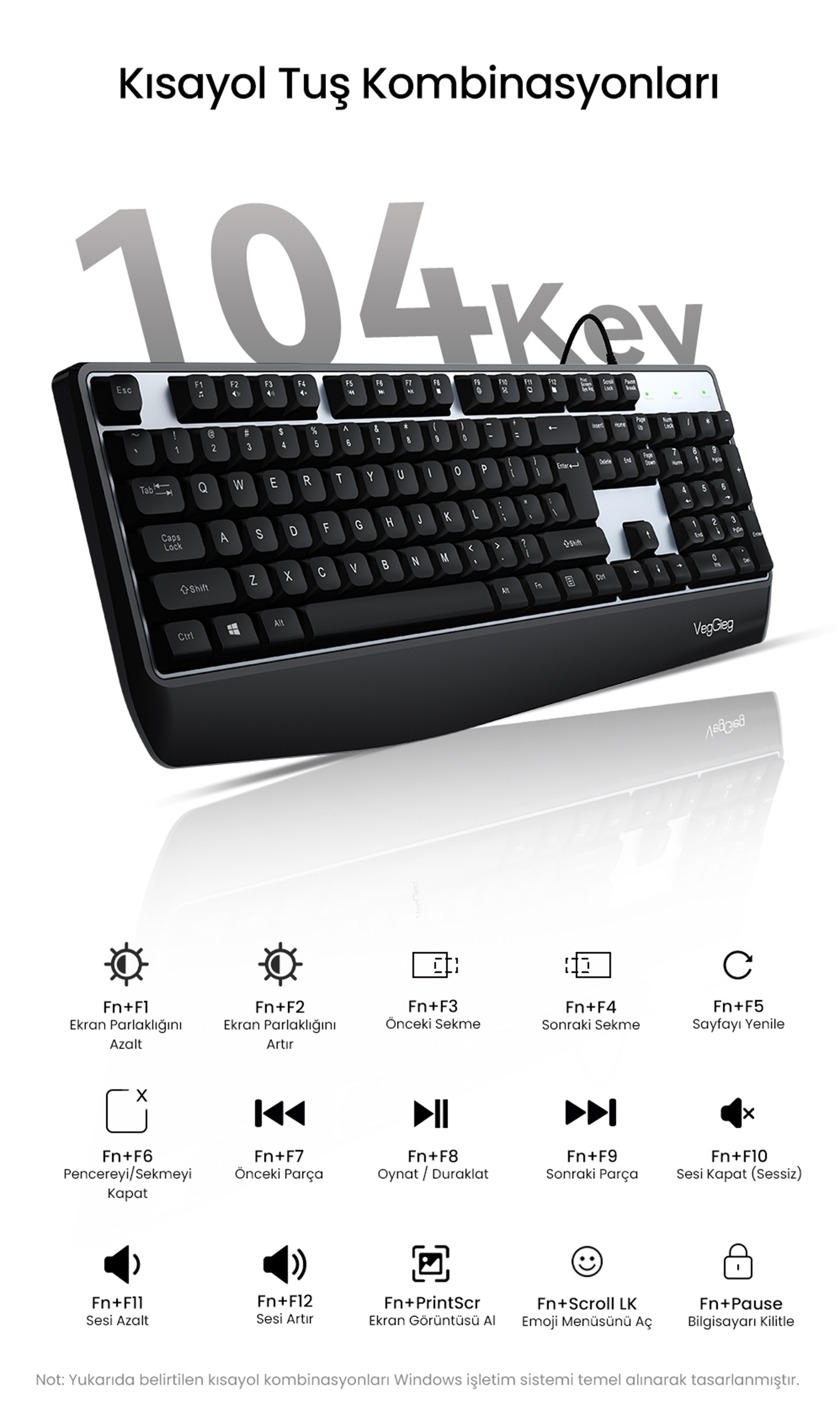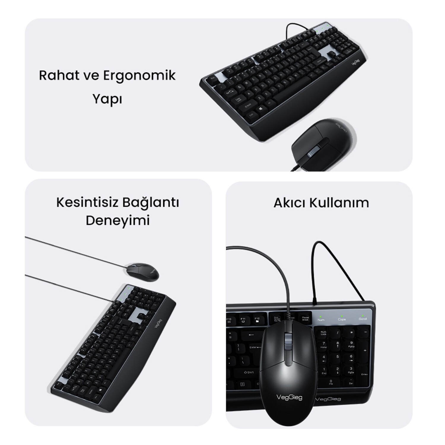 1 x VegGieg MK500A İş ve Ofis Tipi USB-A Kablolu Klavye (Türkçe Q)