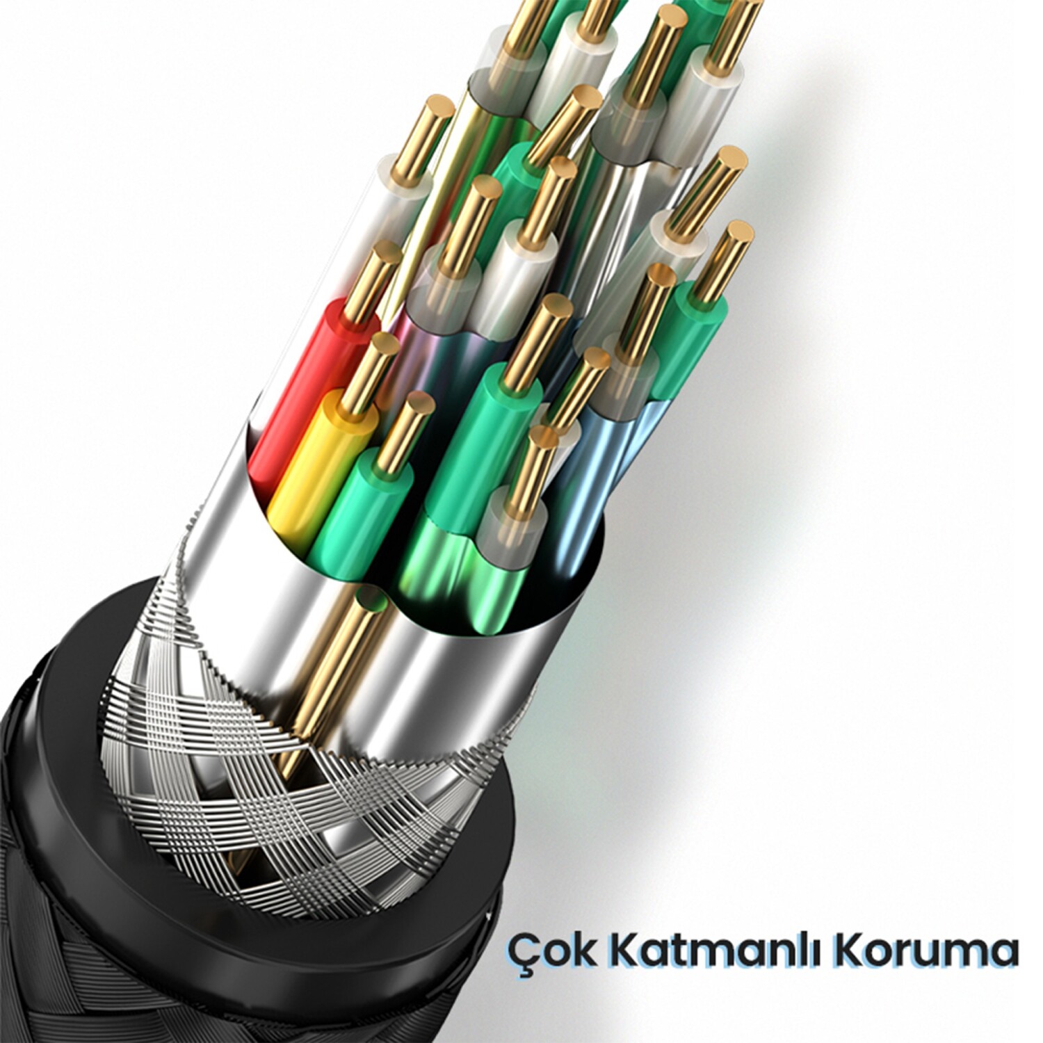 VegGieg Premium HDMI 2.1 Görüntü ve Ses Aktarım Kablosu, yüksek çözünürlükte görüntü ve güçlü ses iletimi arayan kullanıcılar için özel olarak tasarlanmıştır. 8K@60Hz ve 4K@144Hz desteği sunan örgülü kablo, HDMI 2.1 teknolojisinin sunduğu 48 Gbps bant genişliğiyle kesintisiz ve net bir aktarım sağlar. Dayanıklı dış kaplaması, uzun ömürlü kullanım sunarken HDR, Dolby Atmos ve 3D gibi gelişmiş teknolojilerle uyumlu yapısı sayesinde ev sinemasından profesyonel sunumlara kadar birçok alanda üstün performans sunar.