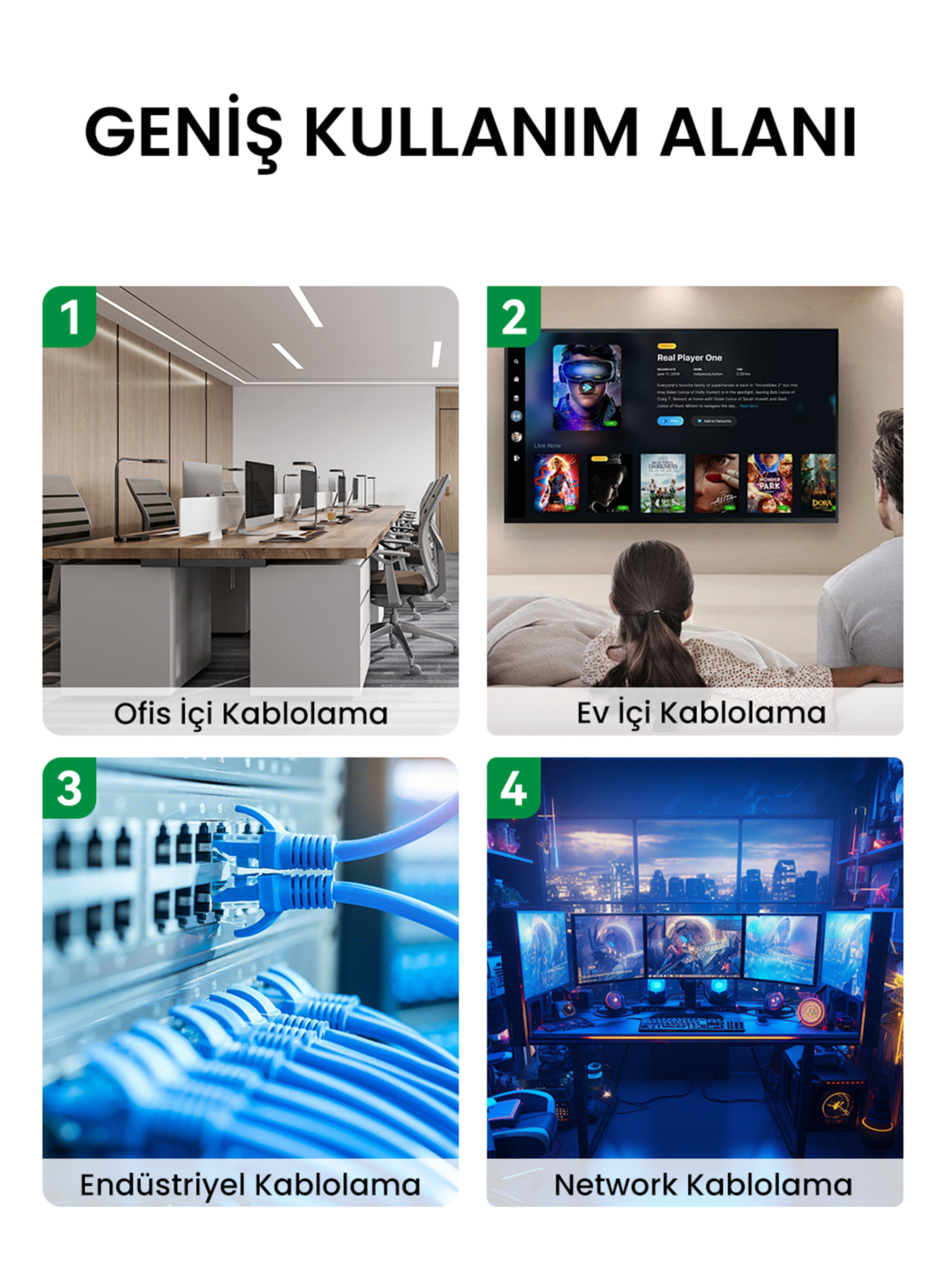 Desteklenen Kablo Tipleri: Cat6, Cat7, Cat8 (Yuvarlak ve Yassı Kablolar)