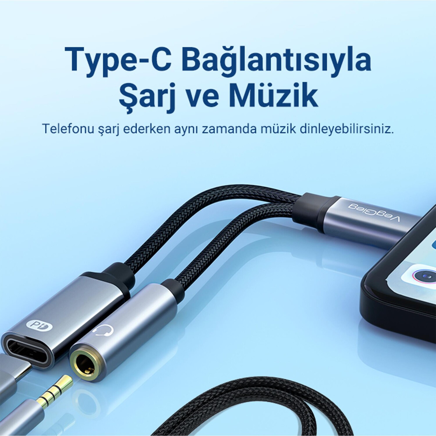 1 x VegGieg Type-C to 3.5mm Kulaklık ve Type-C Şarj Dönüştürücü Adaptör