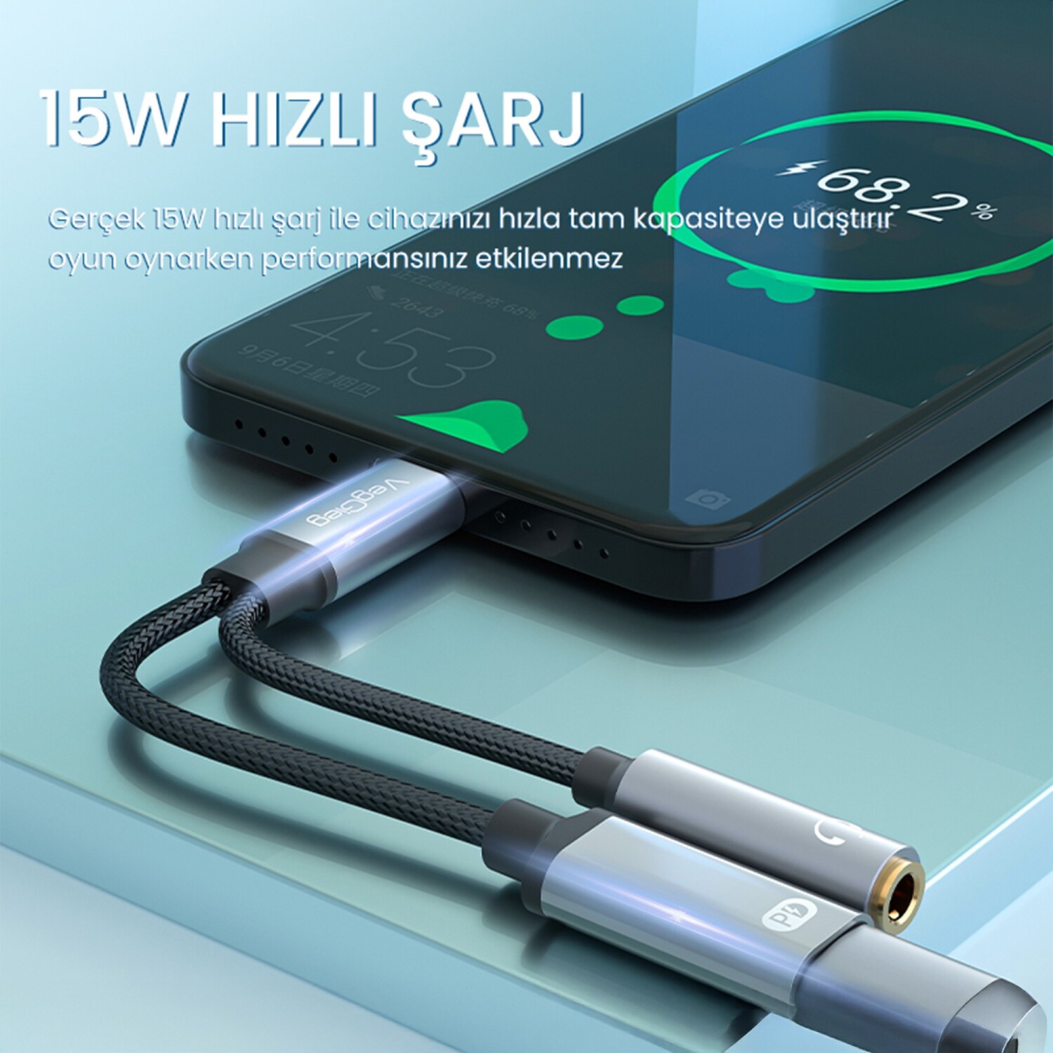 li akıllı telefon veya tabletinizde 3.5mm kulaklık jakı yoksa dert etmeyin! VegGieg V-A620 Çok Fonksiyonlu Ses Adaptörü, tek bir Type-C portunu hem 3.5mm ses çıkışına hem de PD 10W hızlı şarj girişine dönüştürerek sınırları ortadan kaldırır. Hem cihazınızı şarj edip hem de müzik dinleme özgürlüğünü kayıpsız ses kalitesiyle yaşatan bu kompakt çözüm, entegre dijital çipi (Digital Chip) sayesinde kusursuz bir multimedya deneyimi sunar.