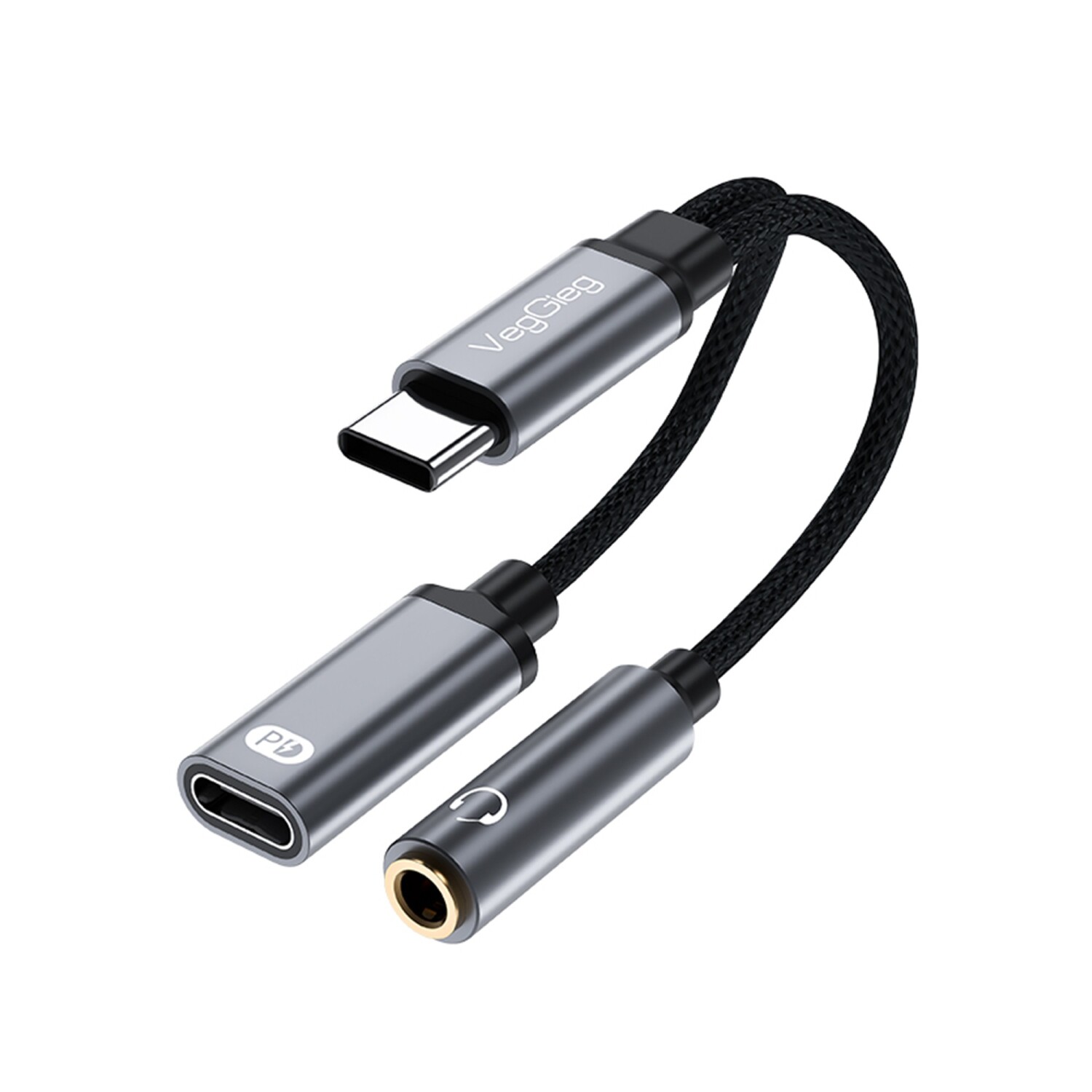VegGieg Type-C to 3.5mm Kulaklık ve Type-C Şarj Dönüştürücü Adaptör
