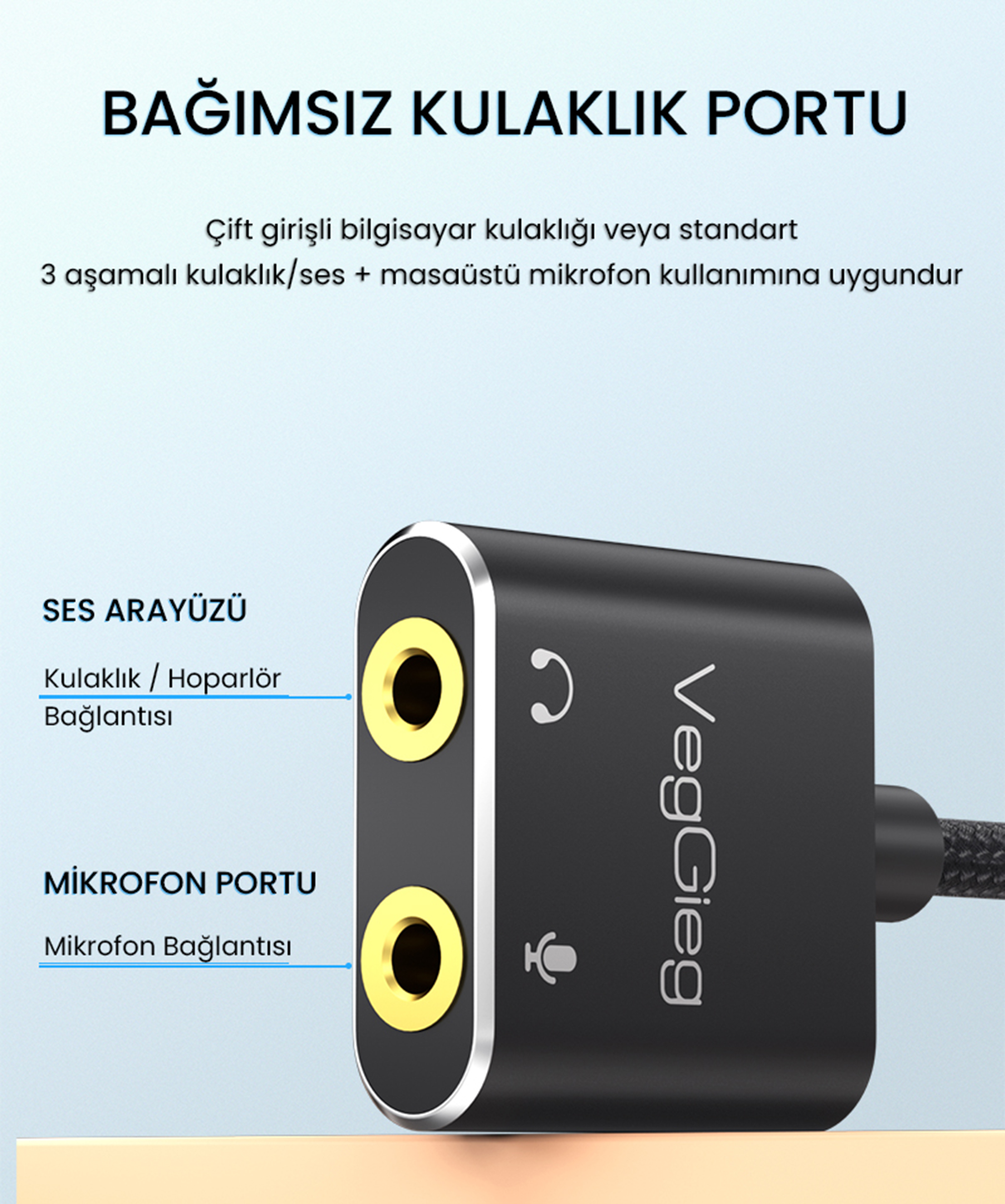 çift 3.5mm giriş (kulaklık ve mikrofon) bulunmuyor mu? VegGieg V-K105 Type-C 2.0 Harici Ses Kartı Adaptörü (External Sound Adapter), ekstra masraf yapmanıza gerek kalmadan bu sorunu anında ve profesyonel bir şekilde çözer. Gelişmiş 7.1 Sound teknolojisiyle donatılan bu kompakt cihaz, sesi sadece iletmekle kalmaz, aynı zamanda mükemmel bir akustik deneyime dönüştürür. Alüminyum alaşımlı dayanıklı gövdesi ve tak-çalıştır özelliğiyle anında kullanıma hazırdır.