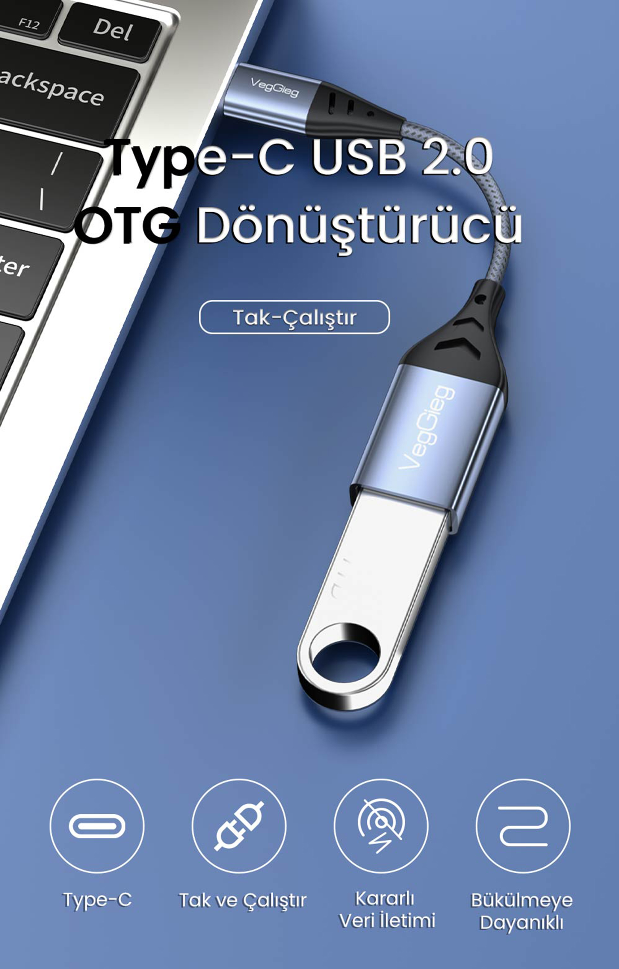1 x VegGieg Type-C to USB 2.0 OTG Çevirici Dönüştürücü Adaptör