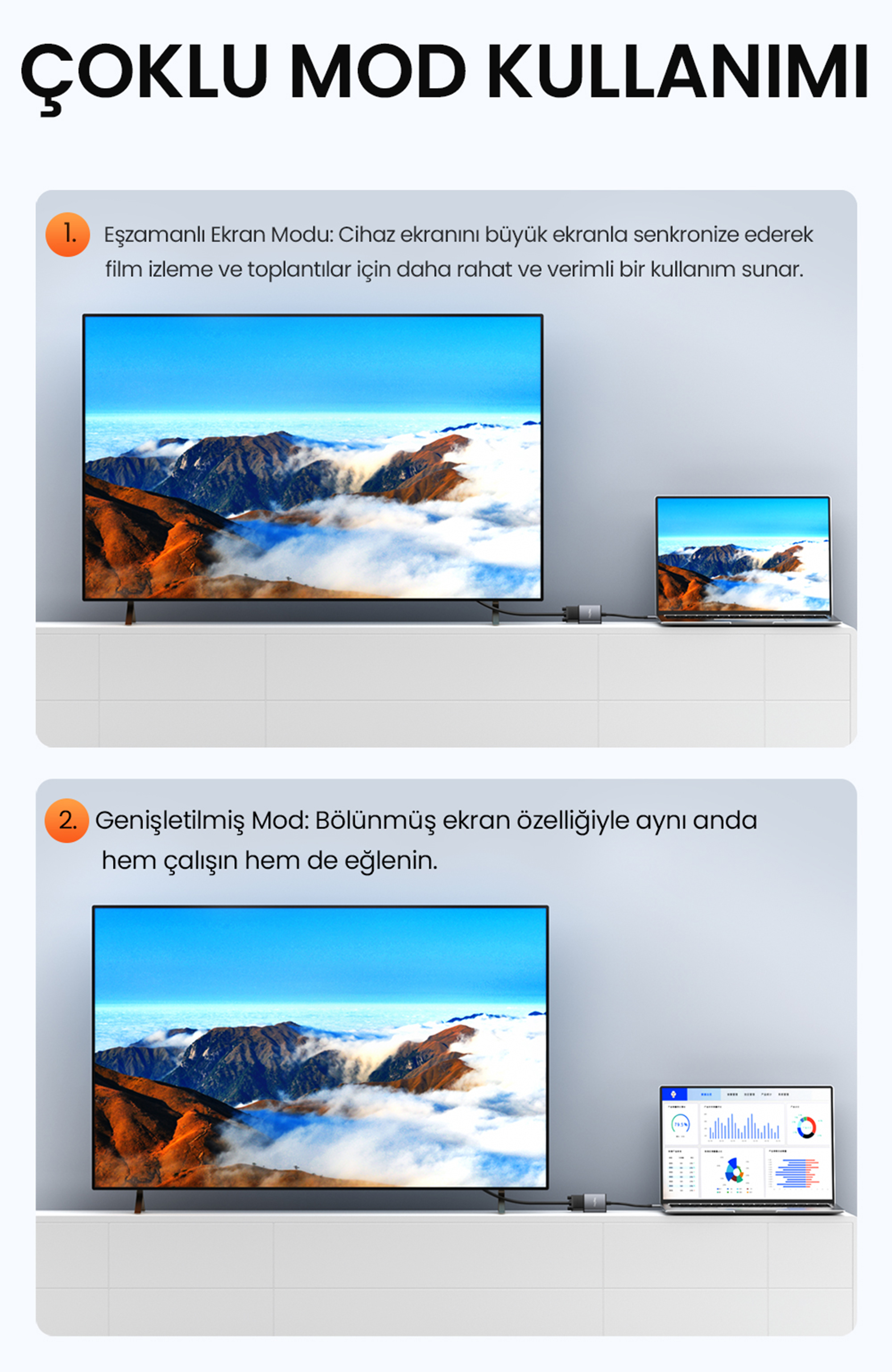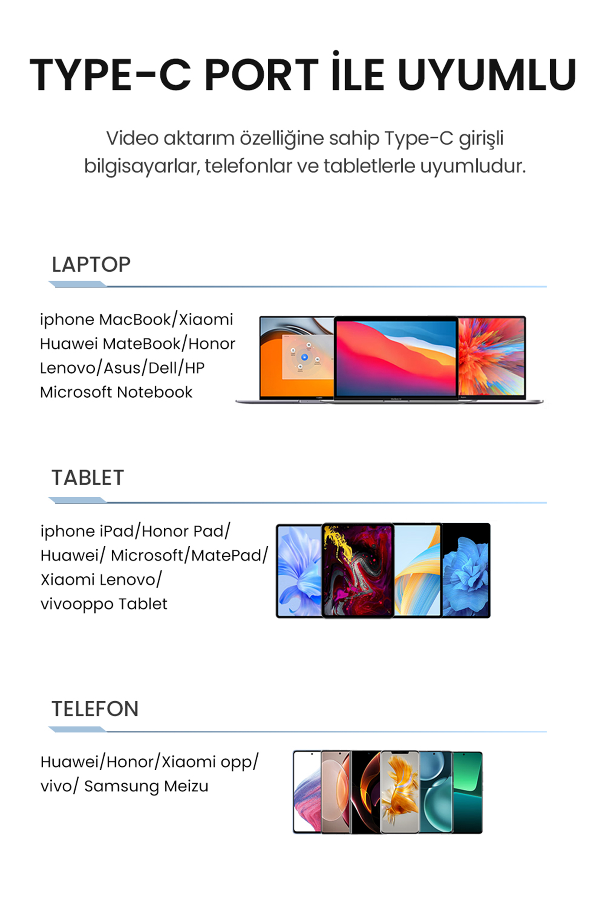 Uyumlu Cihazlar: USB Type-C çıkışlı dizüstü bilgisayarlar, tabletler, akıllı telefonlar