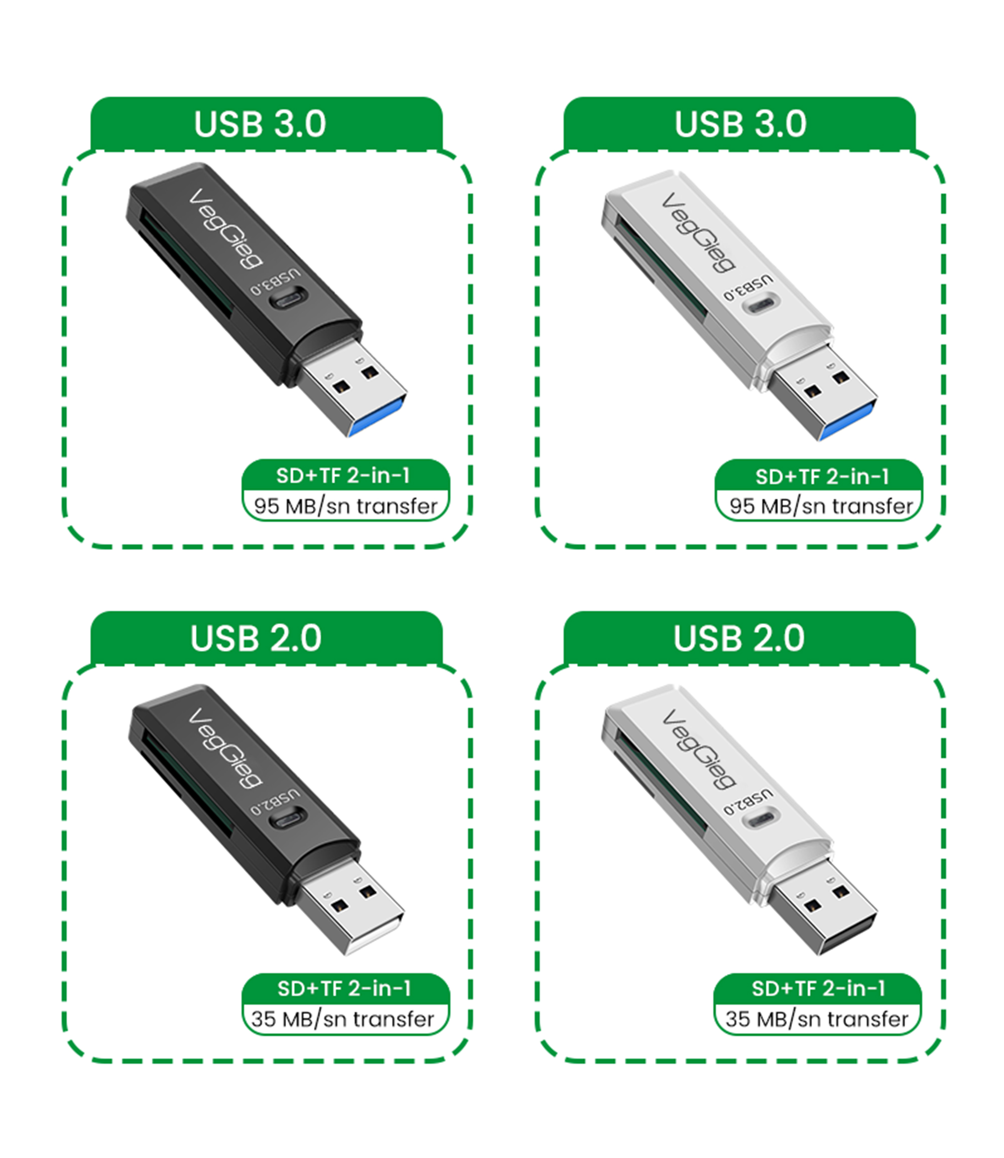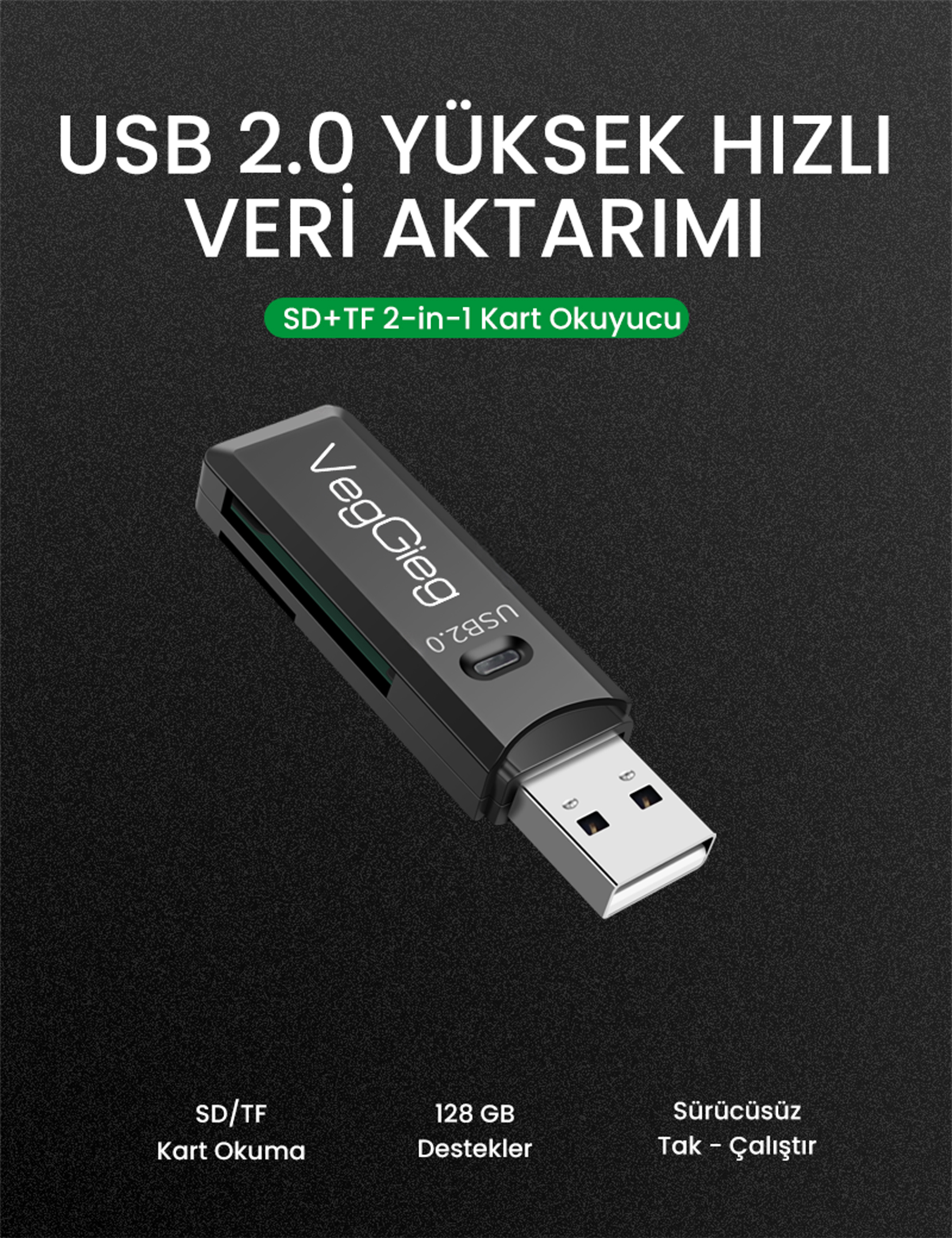 VegGieg USB 2.0 SD ve Micro SD Hafıza Kart Okuyucu, kompakt tasarımı ve çift kart desteğiyle, veri aktarım işlemlerinizde maksimum kolaylık sunar. Aynı anda SD ve Micro SD (TF) kartları okuyup yazma özelliği ile fotoğraf, video, belge gibi dosyalarınızı hızlı bir şekilde bilgisayarınıza aktarabilirsiniz. Maksimum 128 GB kapasite desteği ve saniyede 35MB’a kadar veri aktarım hızı ile günlük kullanımda güvenilir ve hızlı bir performans sağlar.