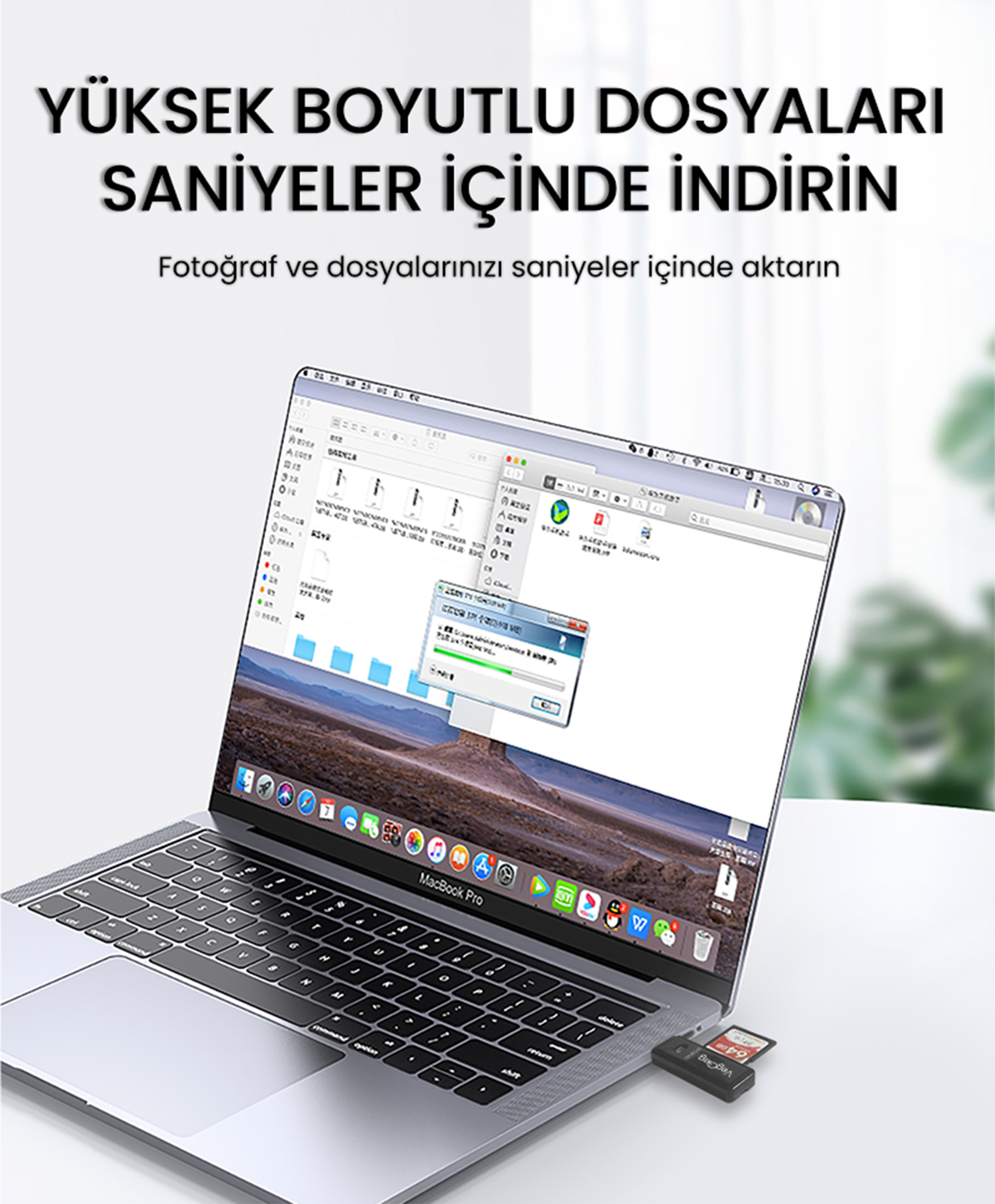Windows, MacOS ve Linux gibi yaygın işletim sistemleriyle tam uyumlu olan kart okuyucu ister ofiste ister evde veya seyahat halindeyken sorunsuz şekilde çalışır.