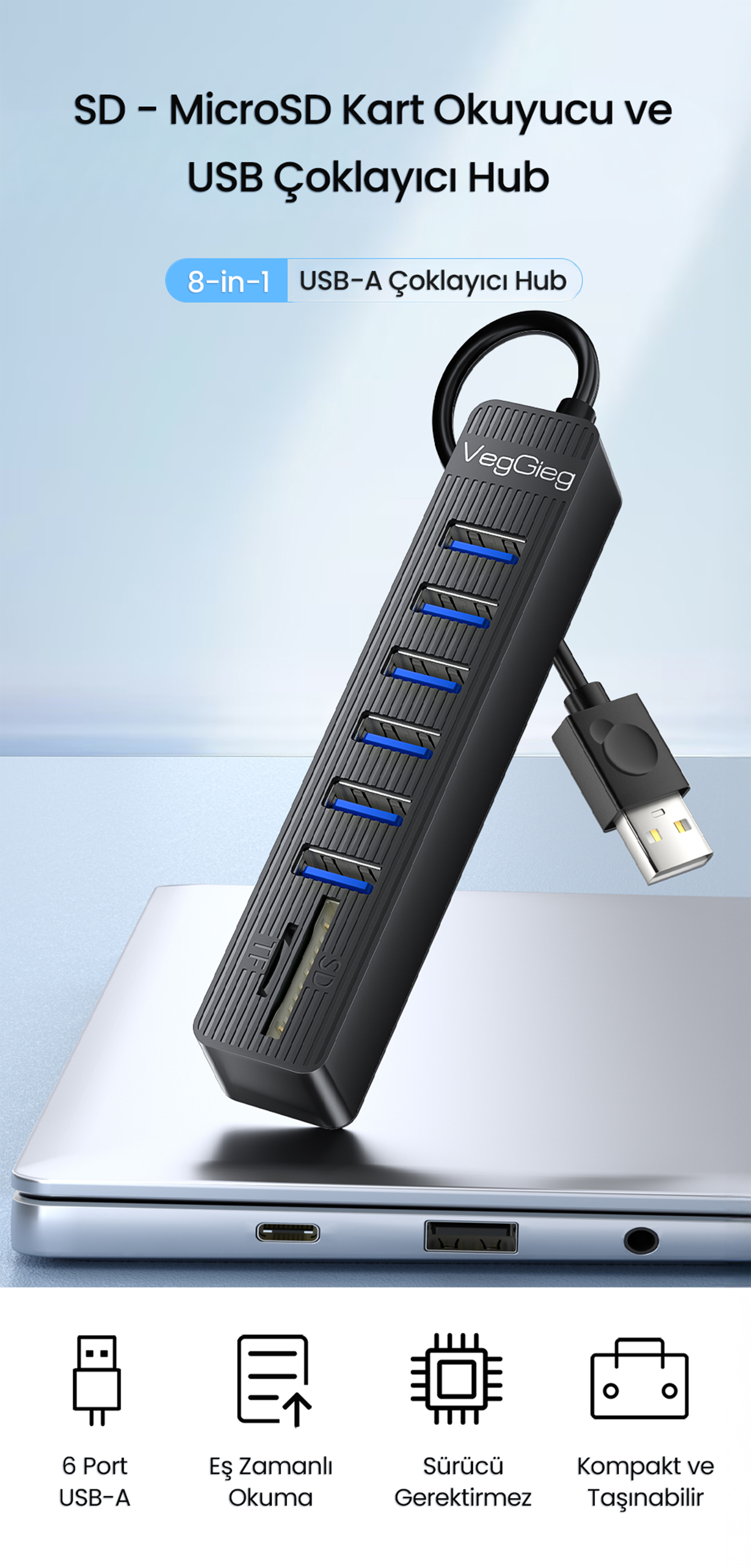 Ürün Tipi: Çok Fonksiyonlu USB Hub ve Kart Okuyucu