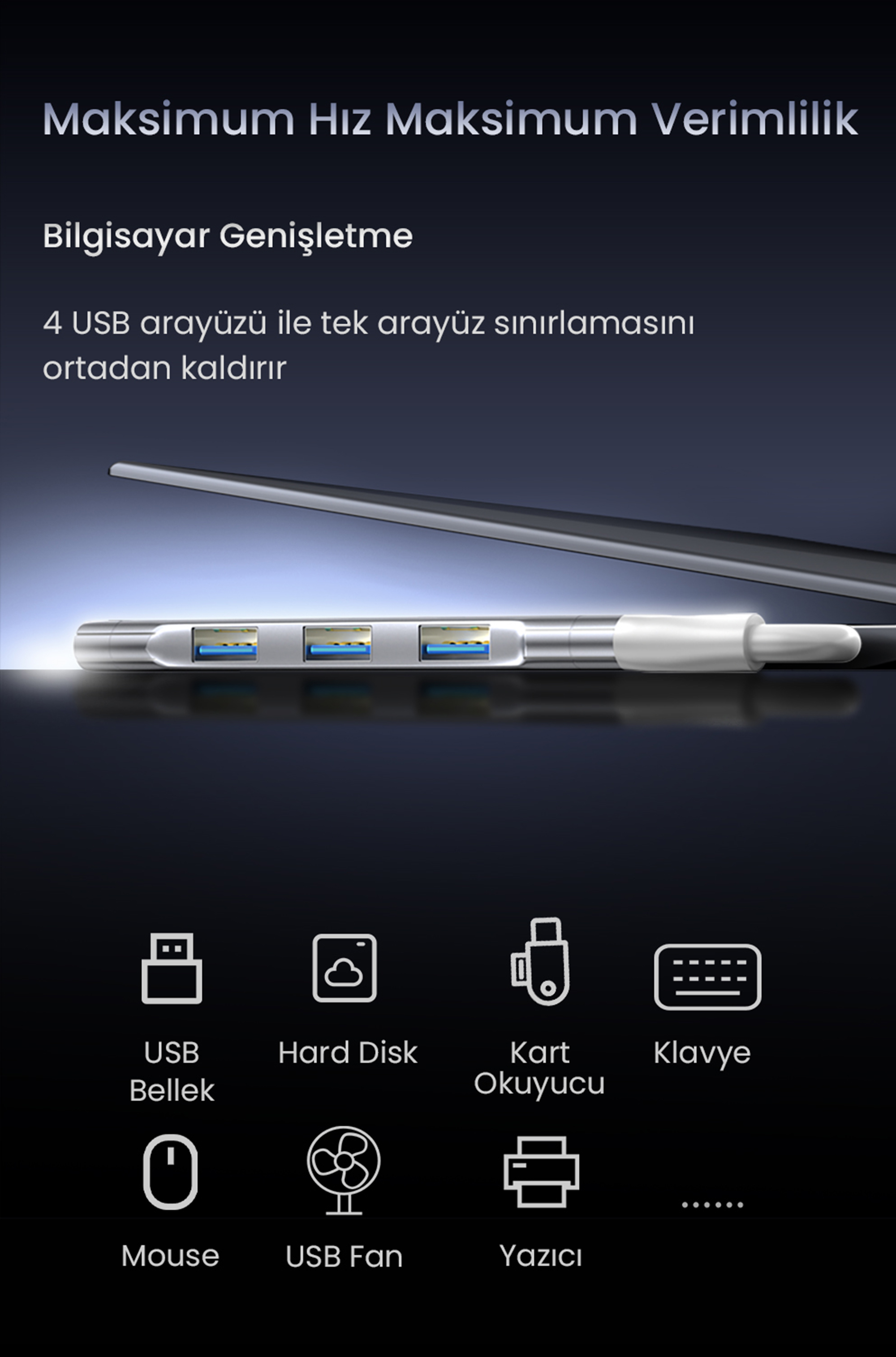 Standart USB-A bağlantısına sahip masaüstü ve dizüstü bilgisayarlarda yaşanan port eksikliğini (özellikle az portlu yeni nesil laptoplarda) giderme.