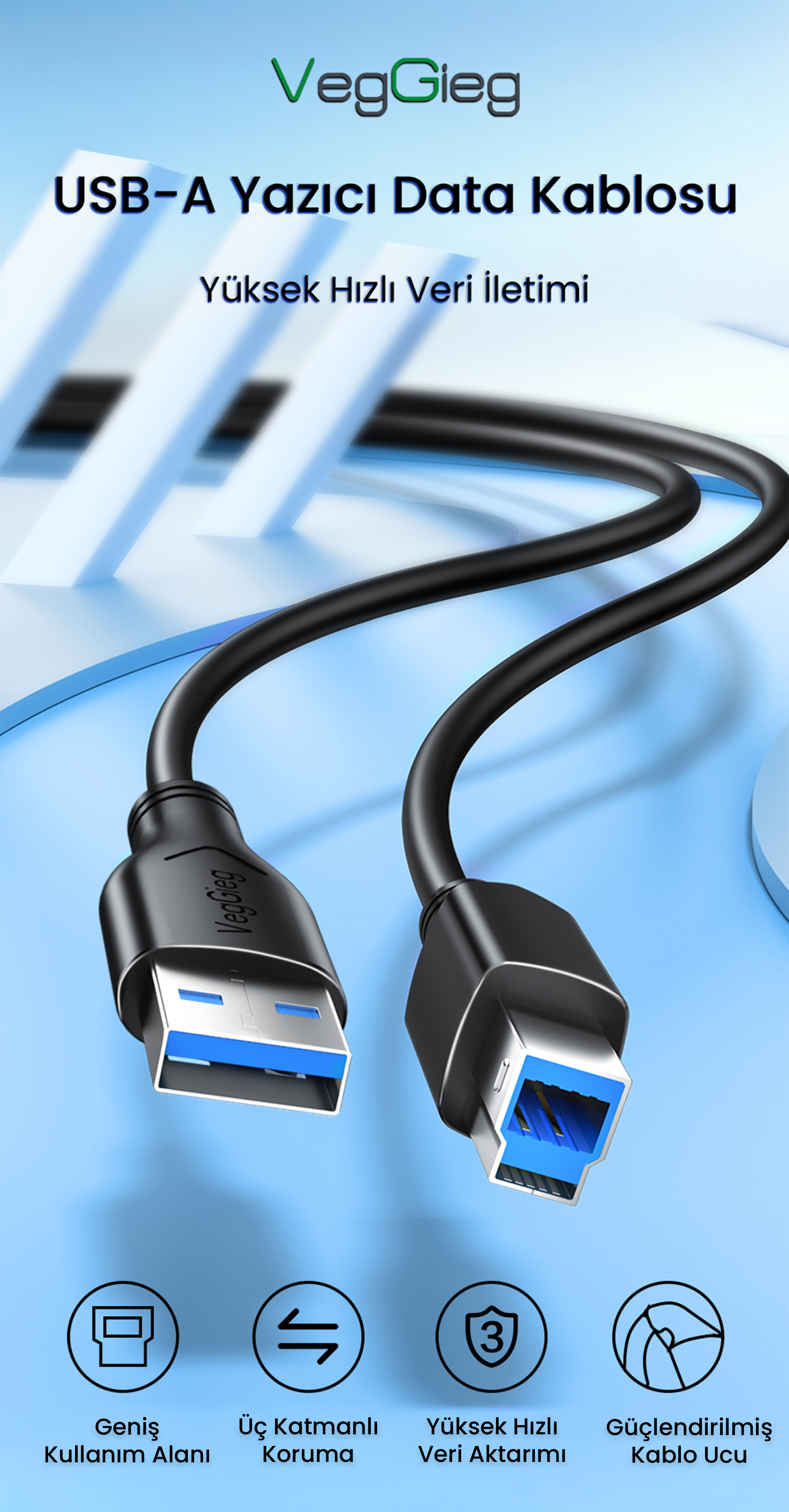 USB 3.0 standardı ile uyumlu olan VegGieg, yazıcı ve uyumlu cihazlar arasında daha verimli veri aktarımı sağlar. Baskı işlemlerinde stabil bağlantıyı destekleyerek veri iletiminde yaşanabilecek kesintilerin önüne geçmeye yardımcı olur. Günlük ofis kullanımı ve yoğun baskı senaryoları için ideal bir çözüm sunar.