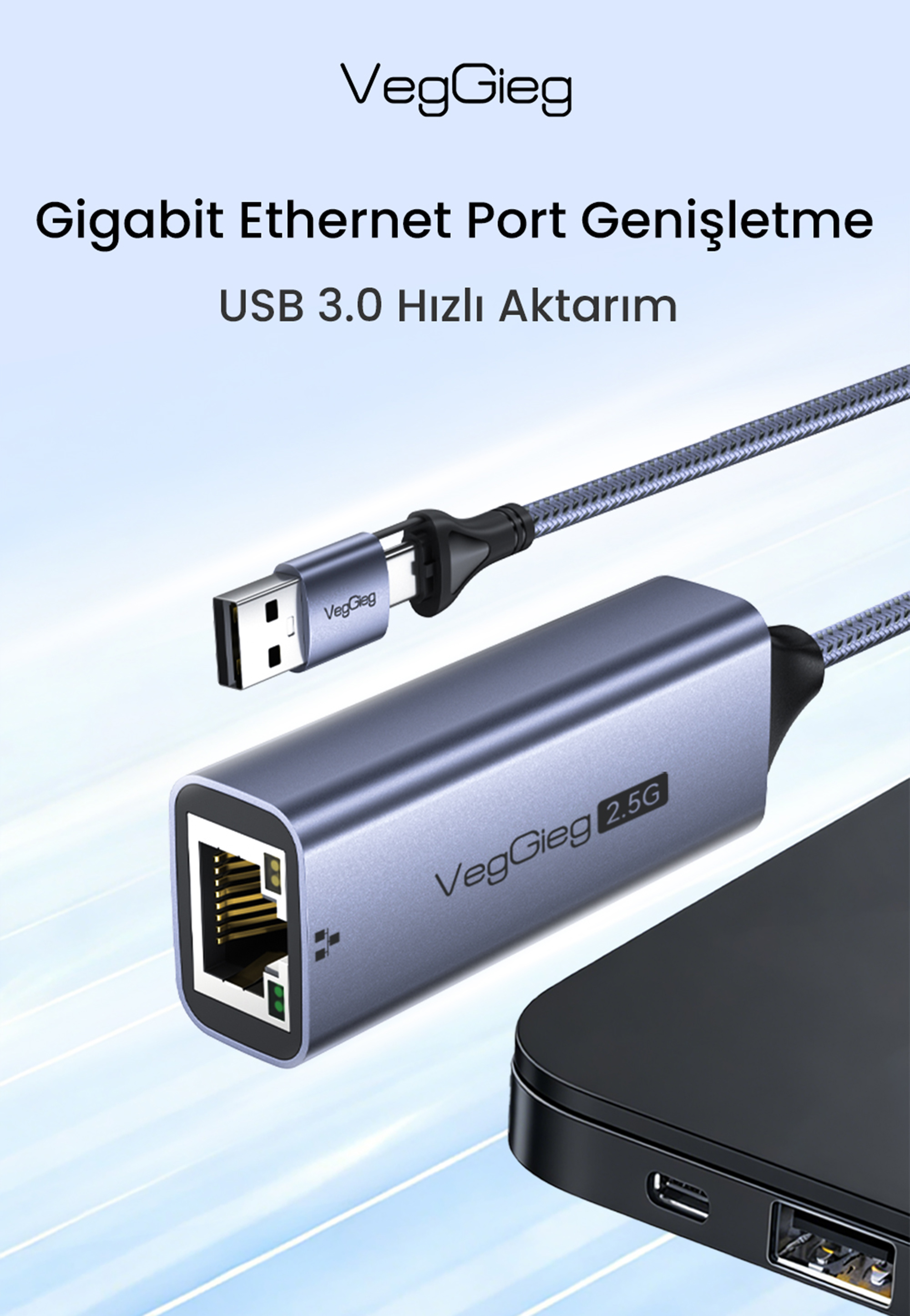 1 x VegGieg USB-A ve Type-C 2.5G Gigabit Ethernet Dönüştürücü Adaptör