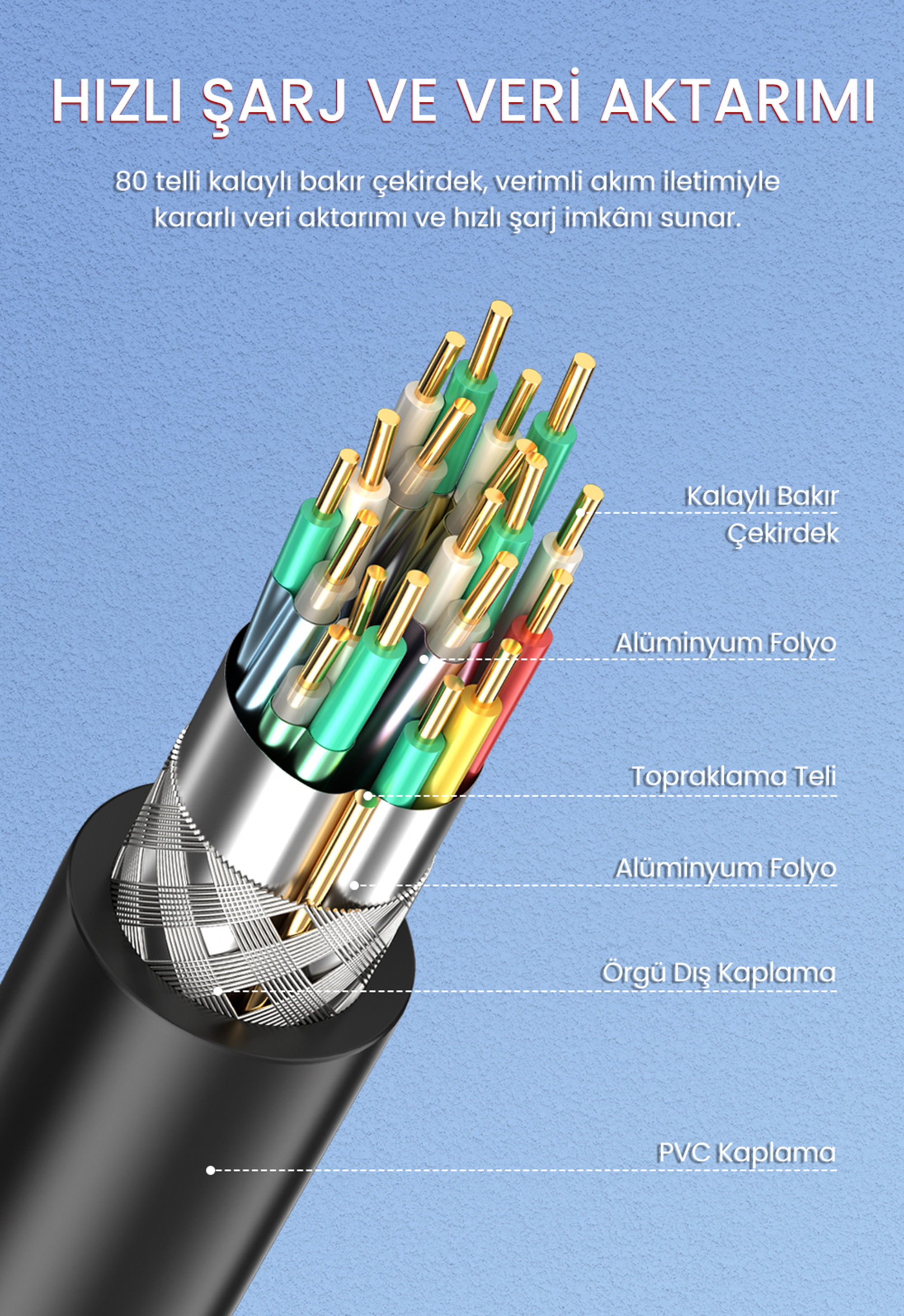 Sadece veri değil, aynı zamanda güçlü bir şarj desteği de sunan bu kablo, 2.1A'e kadar akım ileterek hızlı şarj imkanı sağlar. Micro B girişli cihazlarınızın bataryalarını kısa sürede doldurabilir, zamandan tasarruf edebilirsiniz.