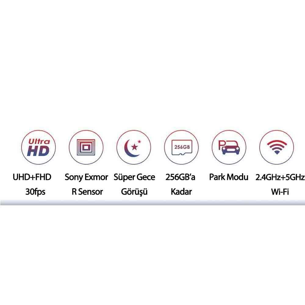 Video Çözünürlüğü: Çift kanal 4K ön + 1080P arka kamera
