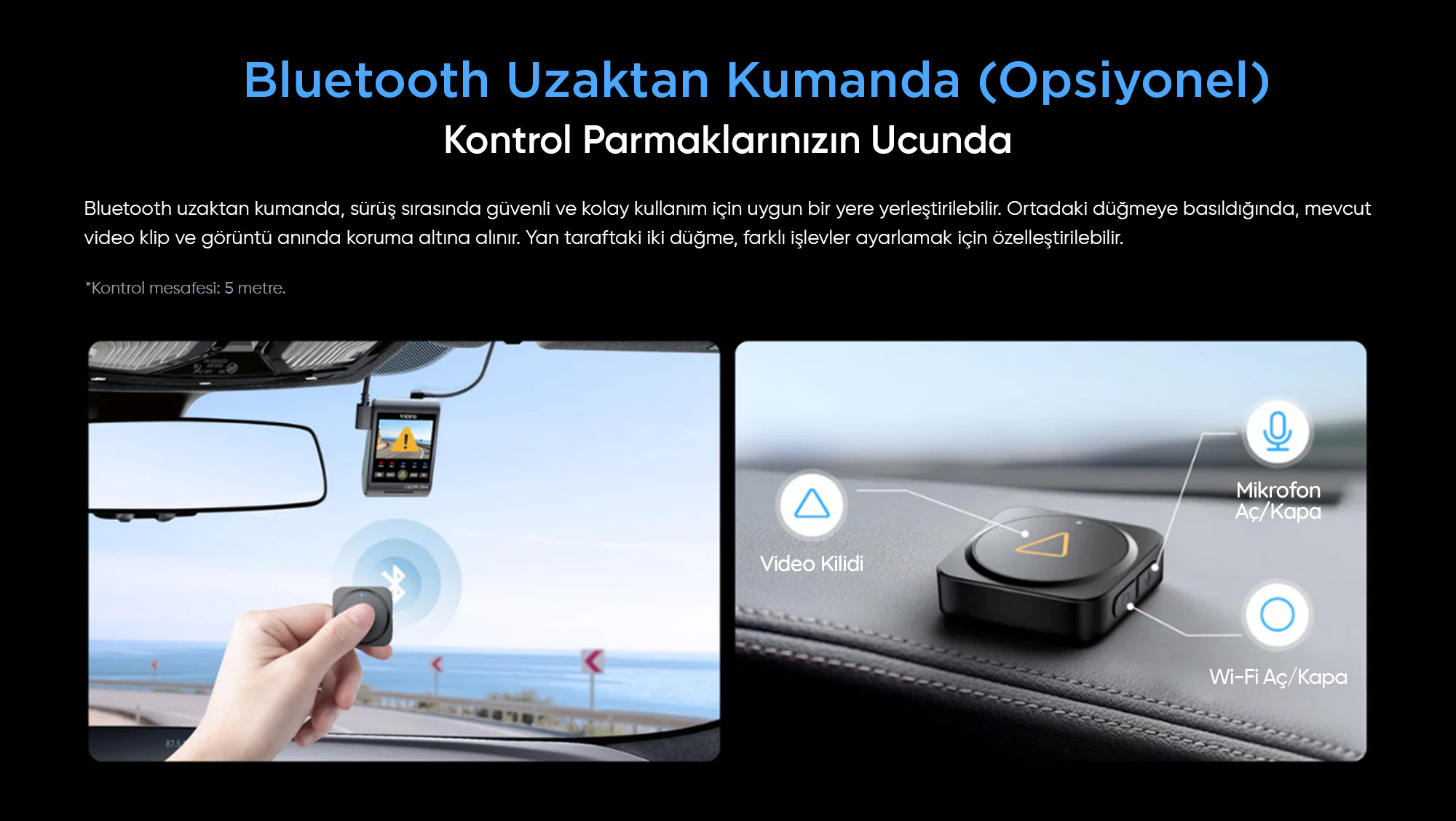 Yükseltilmiş 5GHz Wi-Fi bağlantı modülü ile bu araç kamerası, veri transfer hızını önemli ölçüde artırarak sorunsuz video önizleme, indirme ve paylaşma imkanı sunar. Quad-Mode GPS modülü, 4 farklı uydu konumlandırma sistemini (GPS, BEIDOU, GALILEO, GLONASS) destekleyerek konum, hız ve zaman bilgilerini hassas şekilde kaydeder.