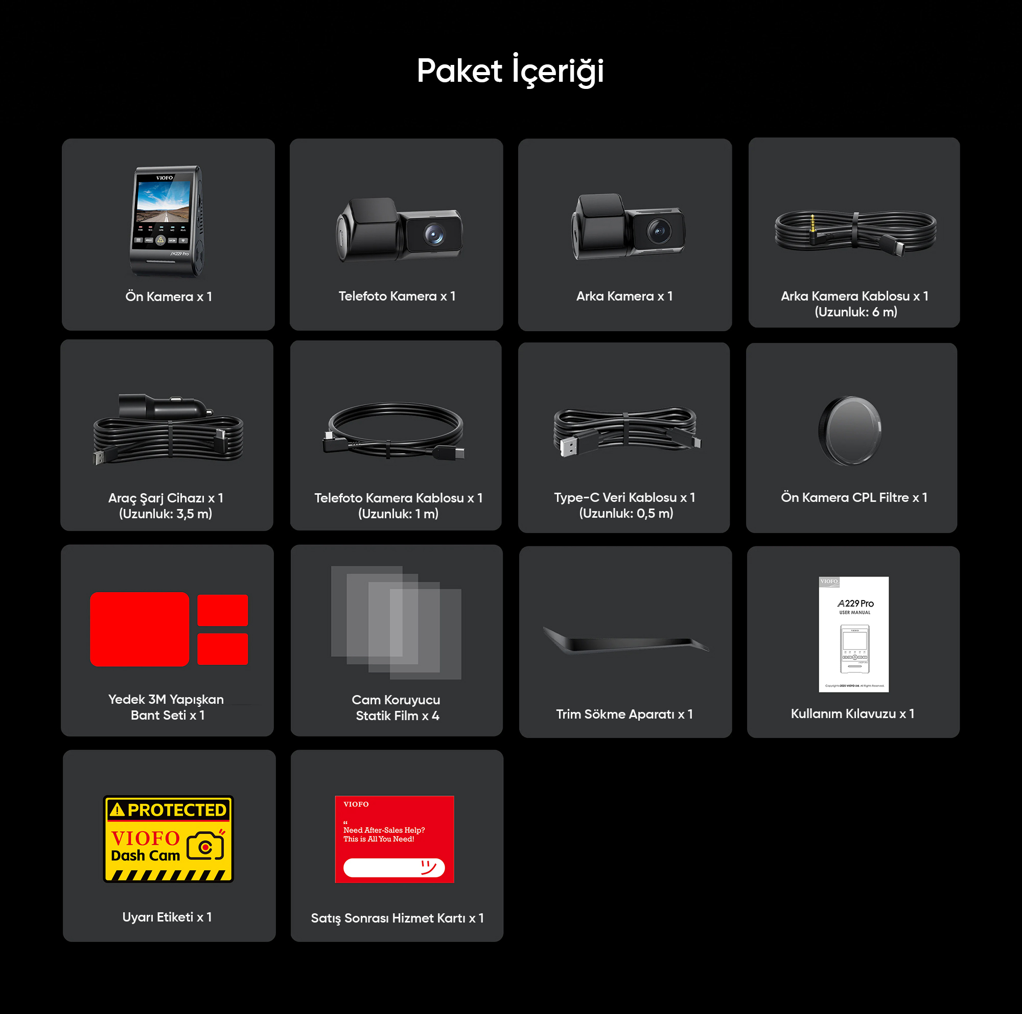 • 1 x Araç Şarj Cihazı (Uzunluk: 3.5 metre)