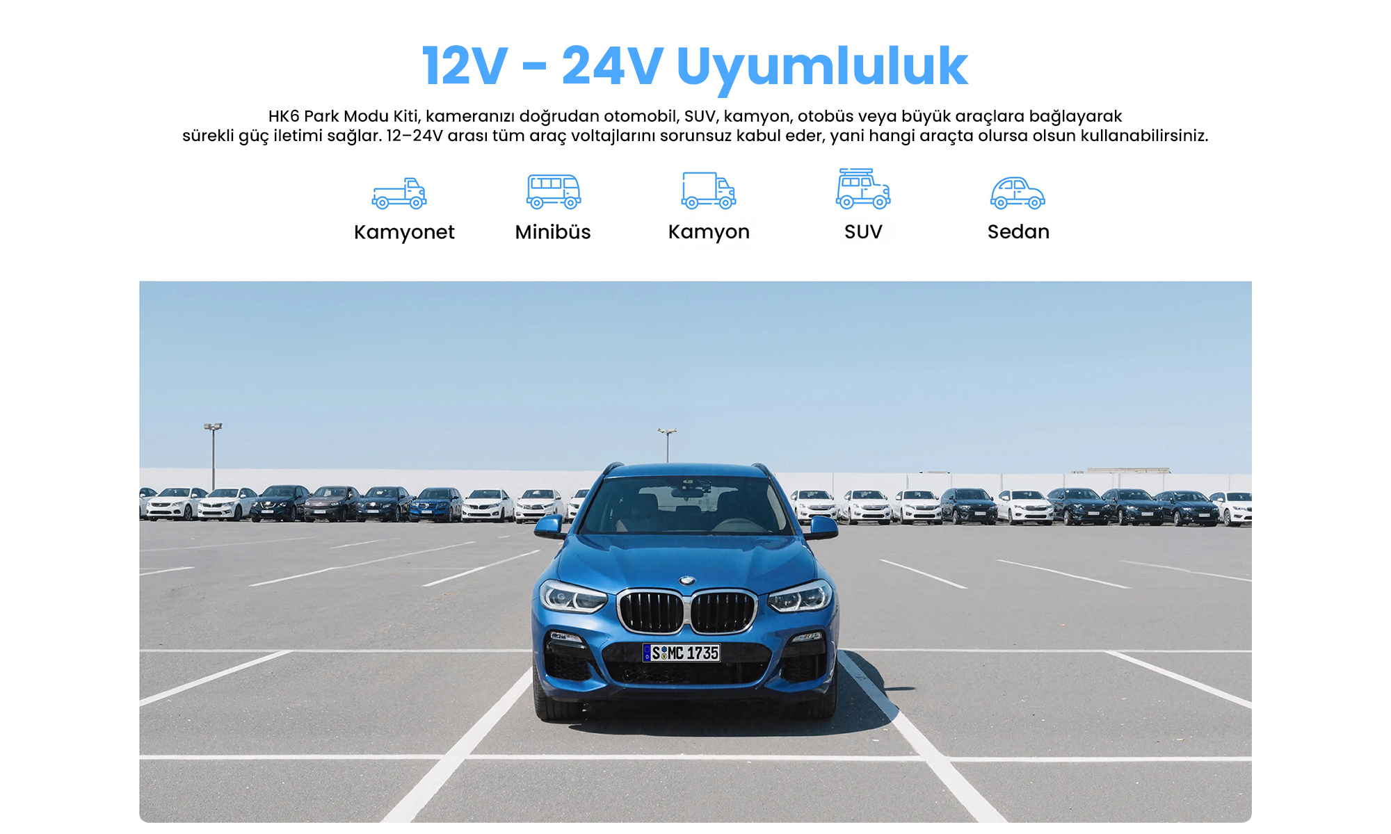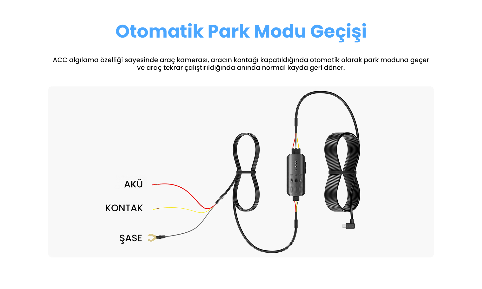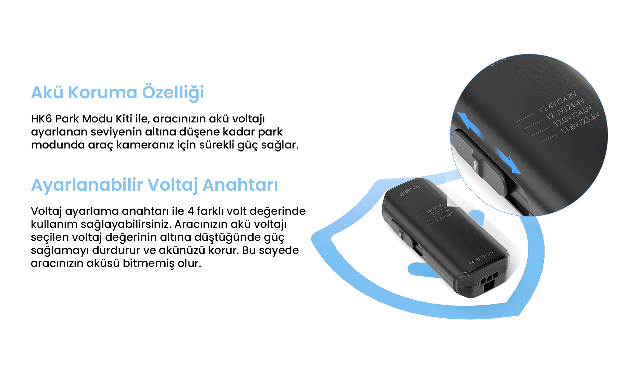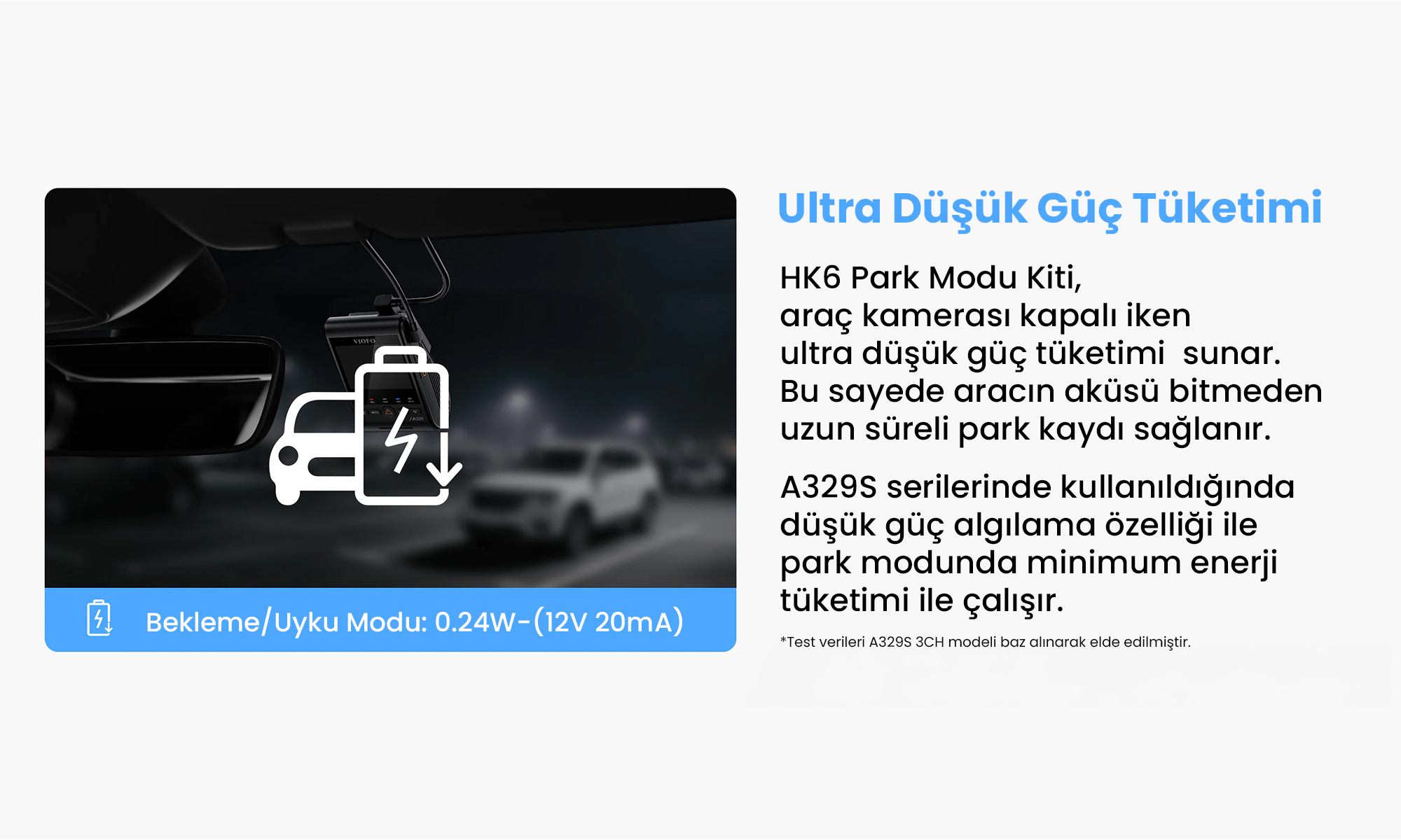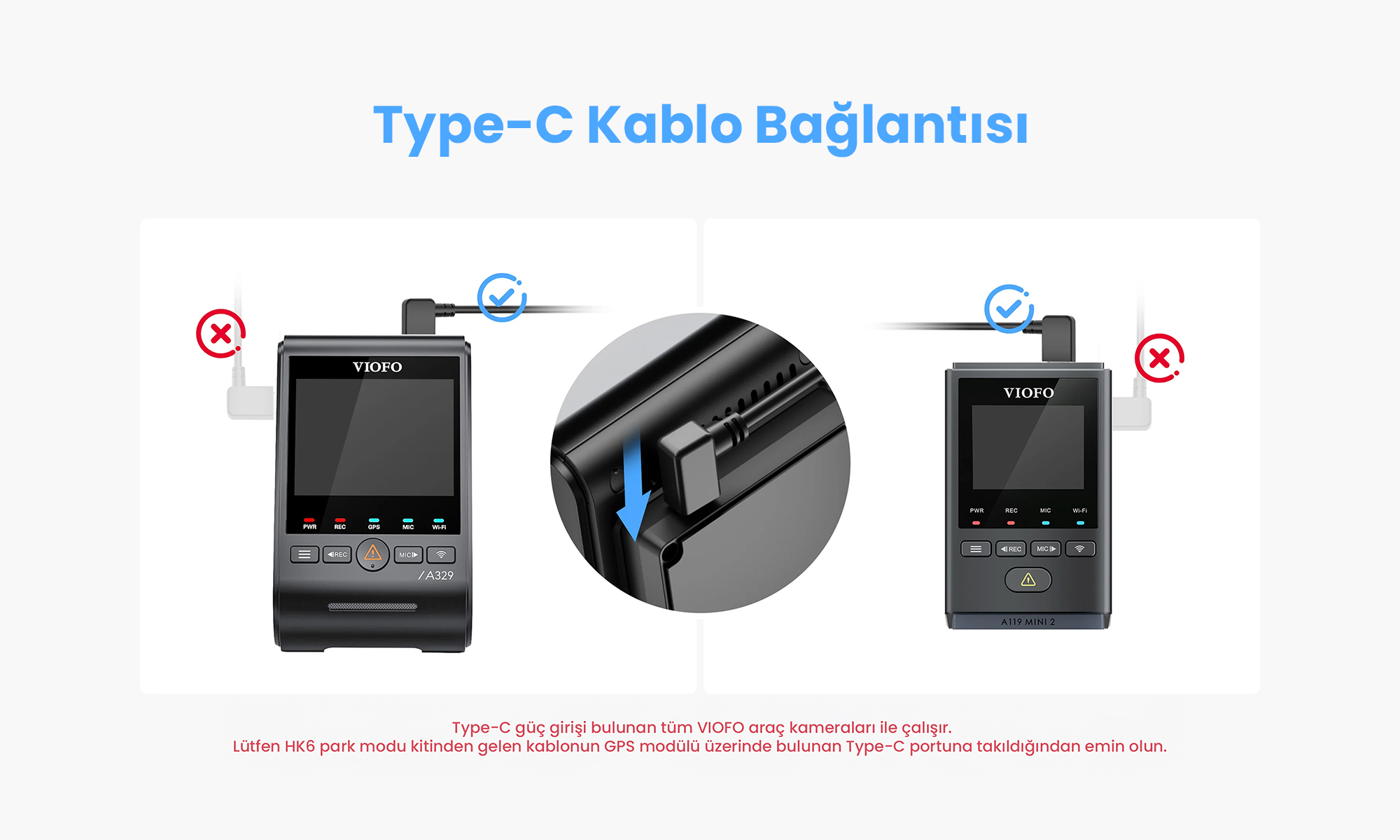 Viofo HK6 A329S ve A229 Ultra için Type-C Hibrit Park Modu Kiti, A329S serisi ve A229 Ultra araç kameraları için özel olarak tasarlanmış, hibrit park modu desteği ve akıllı voltaj koruması ile kameranızdan maksimum verim almanızı sağlar. Kontak kapalıyken otomatik olarak park moduna geçer, araç çalıştığında ise normal kayıt moduna döner.