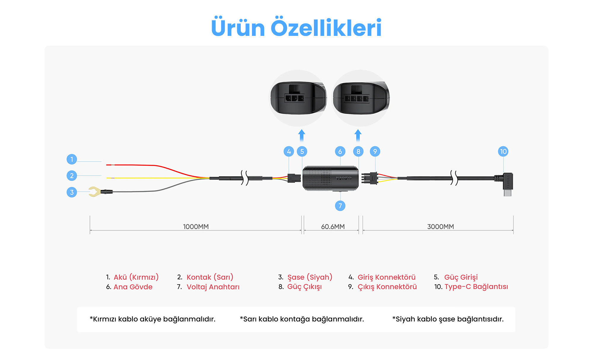1 x Viofo HK6 A329S ve A229 Ultra için Type-C Hibrit Park Modu Kiti